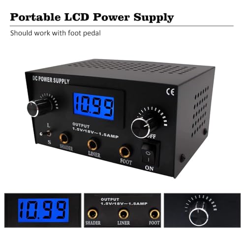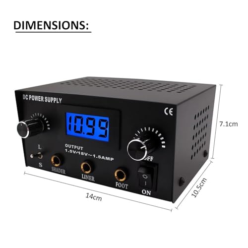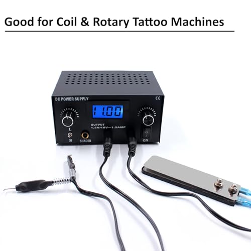 ?????????? ???????????? ?????? ???????????? ????????????????: The LCD display reads out the voltage as the machine runs and has a programmable preset function. This power supply box works with rotary tattoo machines, tattoo guns, and other types of machines. This unit comes with all the parts you need to get down to tattooing. ????????????????: 110v input adapter power; 19.V/2a overload protection; and 0.1v, 0.2v, and 0.5v adjustable voltage increments. ?????? ?????????????? ?????????????? ??????????: The digital, ultra-bright LED screen makes it incredibly easy to read the voltage and also displays amps, speed, duty cycle, and follow through. Overall, this machine provides a more accurate readout than other portable machines. ?????????????? ???????????? ????????????????: Dual Power Supply made with quality materials. We are creating professional-grade tattoo supplies for a fraction of the cost. With the help of this high-quality power supply machine, you can create the tattoo you've always wanted from the comfort of your home. ?????????? ?????? ???????????? ??????????????: This dual power supply unit allows the tattoo artist to easily switch from a liner to a shader machine, streamlining the permanent-tattoo process and providing effortless results.
