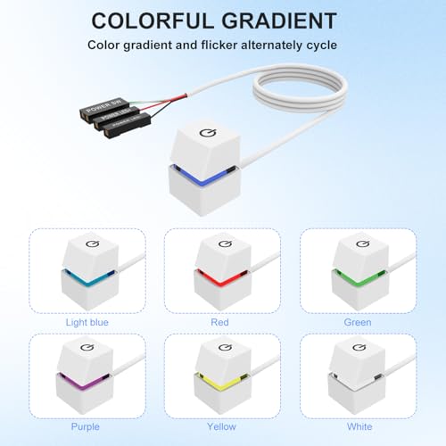 ? External Desktop PC Power Button Switch ??Designed with a mechanical keyboard keyclick feel, this PC power button provides a crisp and loud keystroke sound. Built for durability and reliability, it's ideal for home users, computer parts enthusiasts, bare board machines, water-cooled chassis DIY, and PC builds. ? 2M Long Cable for Easy Access ??This PC power switch features a 2-meter power cable, making it perfect for hard-to-reach PC cases. Whether your PC tower power switch is under a desk or in a tight space, this power button for PC allows easy ON/OFF control. ? Customizable Key Cap for DIY Enthusiasts ??The CPU power button comes with a removable keycap, allowing you to personalize it with compatible + type keycaps (extra caps not included). A great addition to your PC parts collection. ? Simple Installation with Adhesive Sticker ??Easily connect the POWER LED+, POWER LED-, and POWER SW to the motherboard, then secure the power switch for PC with the included adhesive plate—no complicated setup required! ? Vibrant Gradient Lighting & Mechanical Feel ??Experience the satisfying tactile feedback of a mechanical switch, enhanced by colorful gradient lighting. A perfect replacement power switch for PC, ensuring reliable functionality for damaged or broken PC power buttons. ? Package included ??1x Computer Power Switch ON/OFF with 2M cable; 1x 1 to 2 splitters; 1x adhesive stickers