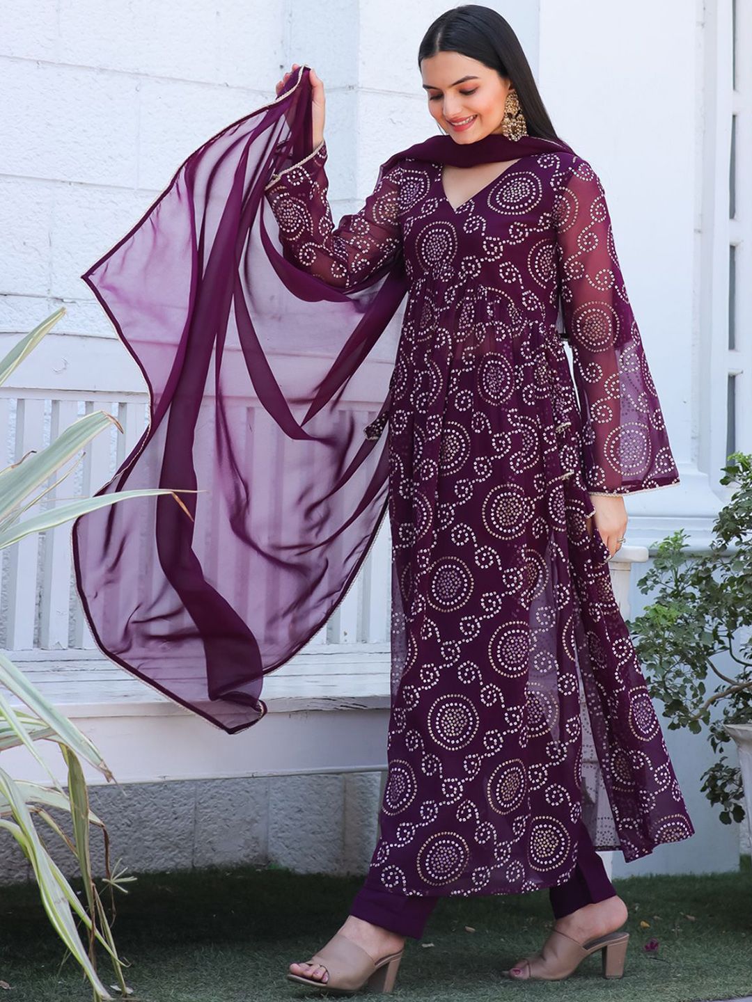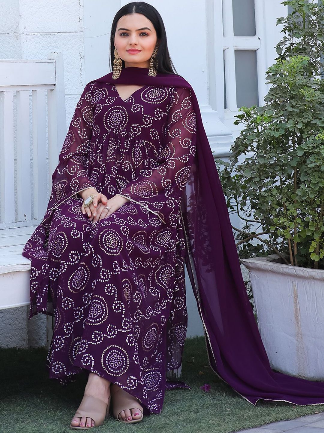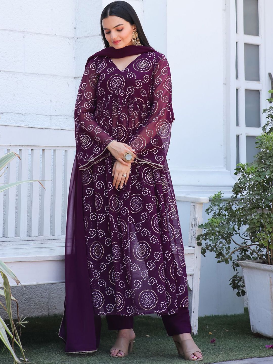 Buy this stylish TextileNow Bandhani Printed Georgette V-Neck Empire Kurta With Trousers & Dupatta at Marincart Nepal. This product offers great quality and value. Perfect for those looking for the latest trends in fashion. Get yours now at unbeatable prices.