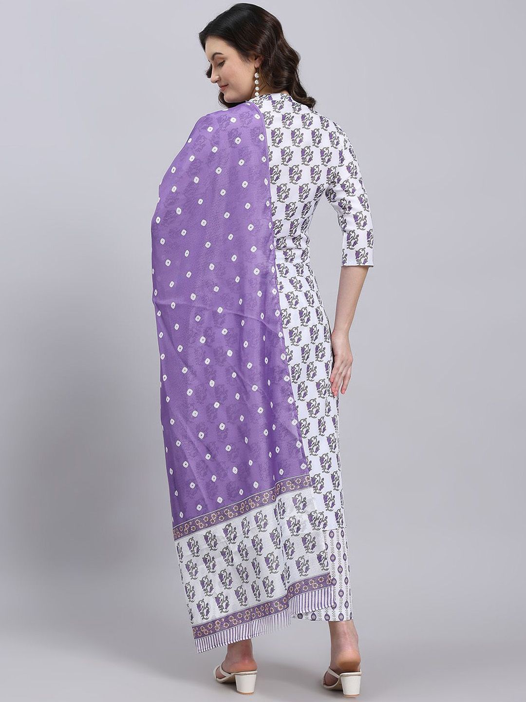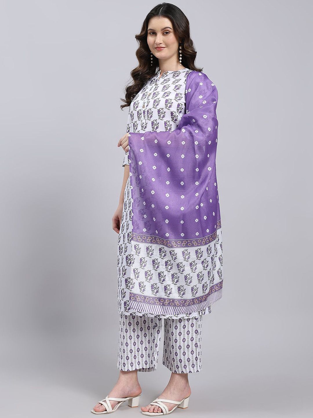 THE FAB FACTORY Floral Printed Band Collar Straight Kurta With Trousers & Dupatta