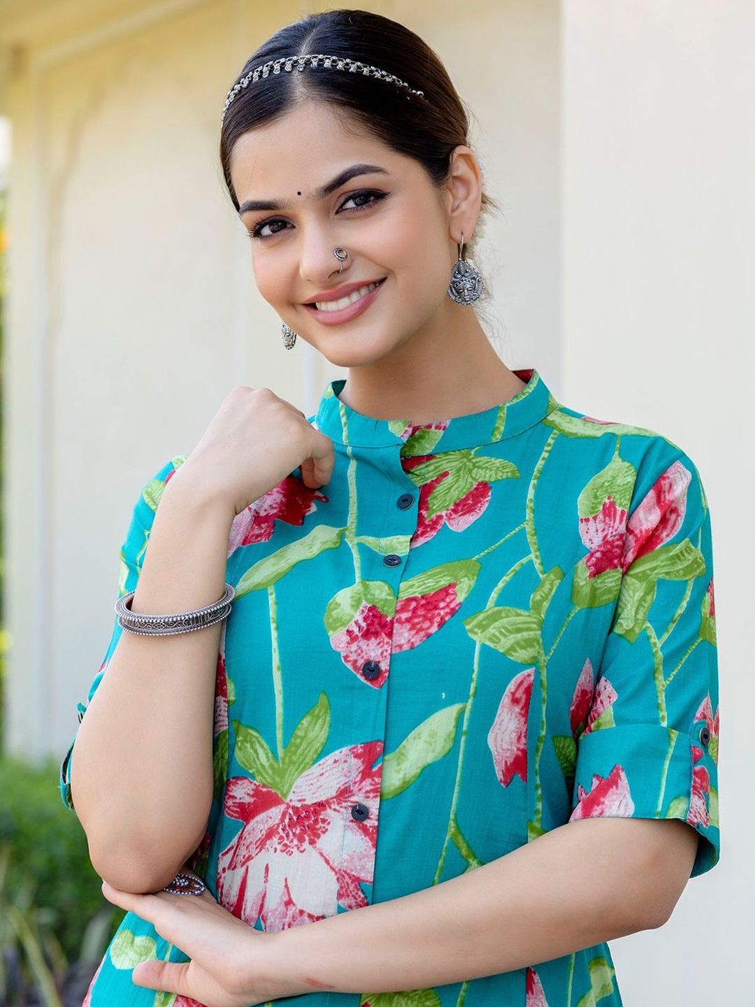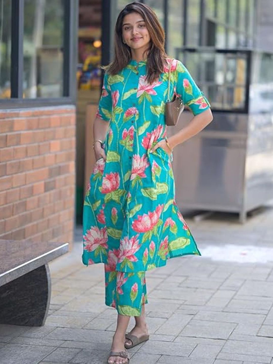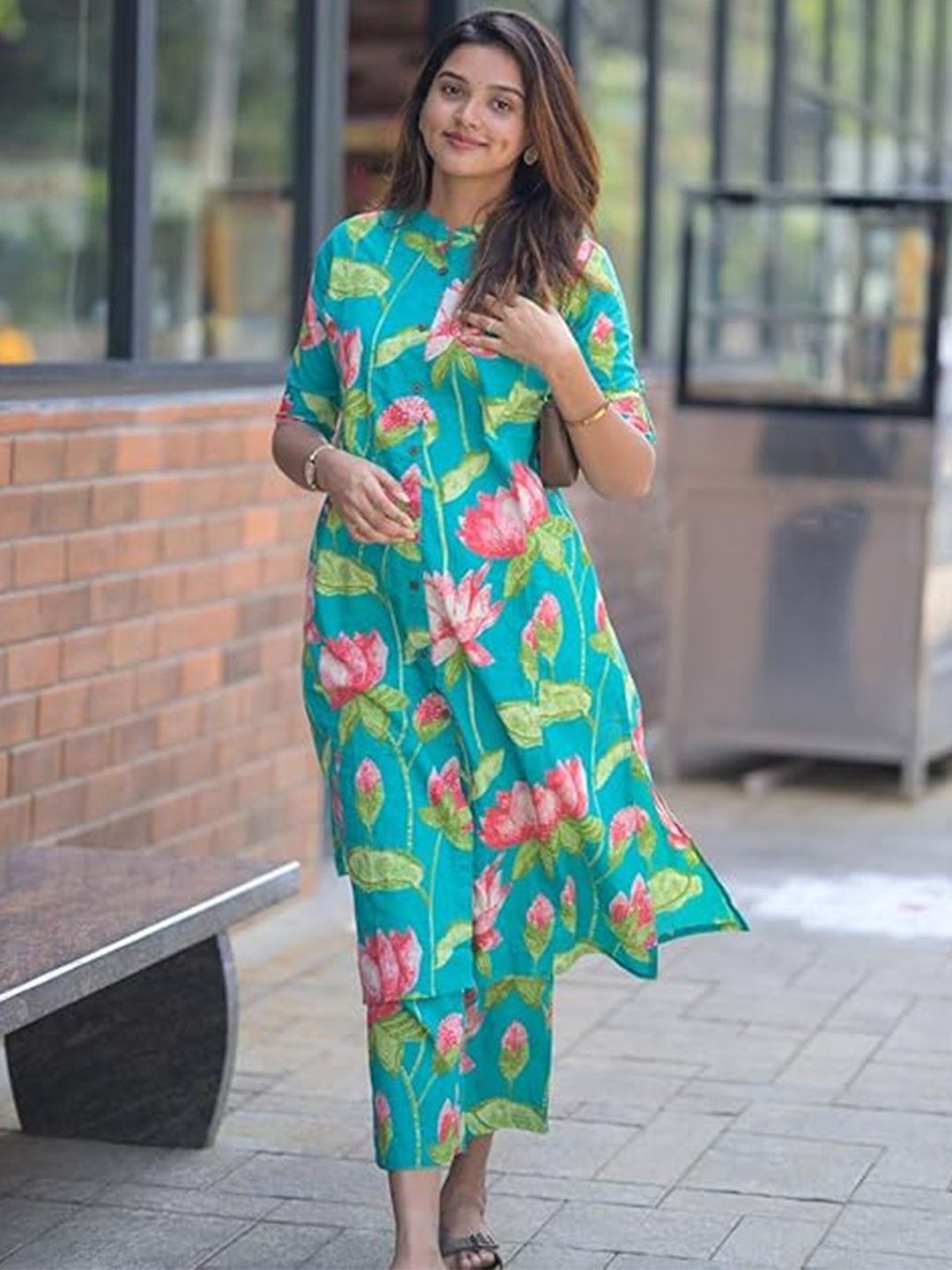 Buy this stylish THE FAB FACTORY Floral Printed Mandarin Collar A-Line Kurta With Trousers at Marincart Nepal. This product offers great quality and value. Perfect for those looking for the latest trends in fashion. Get yours now at unbeatable prices.