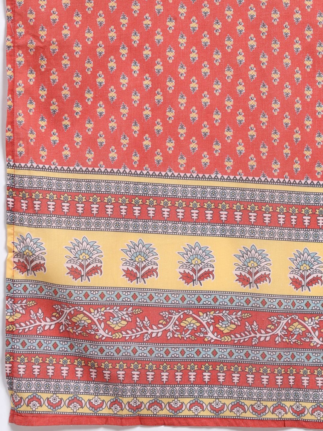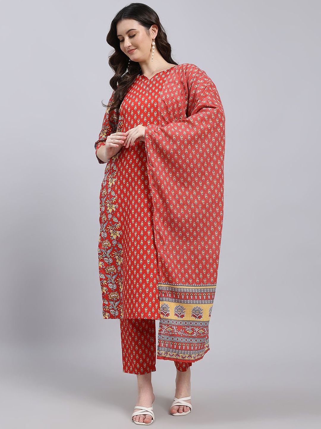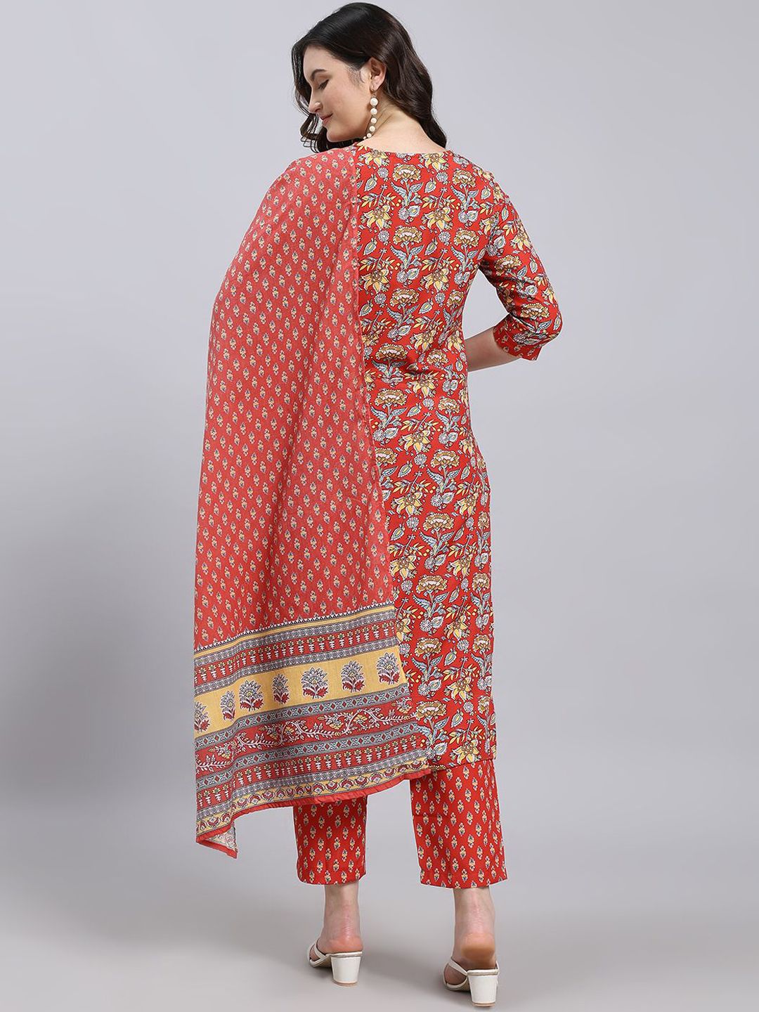 THE FAB FACTORY Floral Printed Notch Neck Mirror Work Straight Kurta Trousers & Dupatta