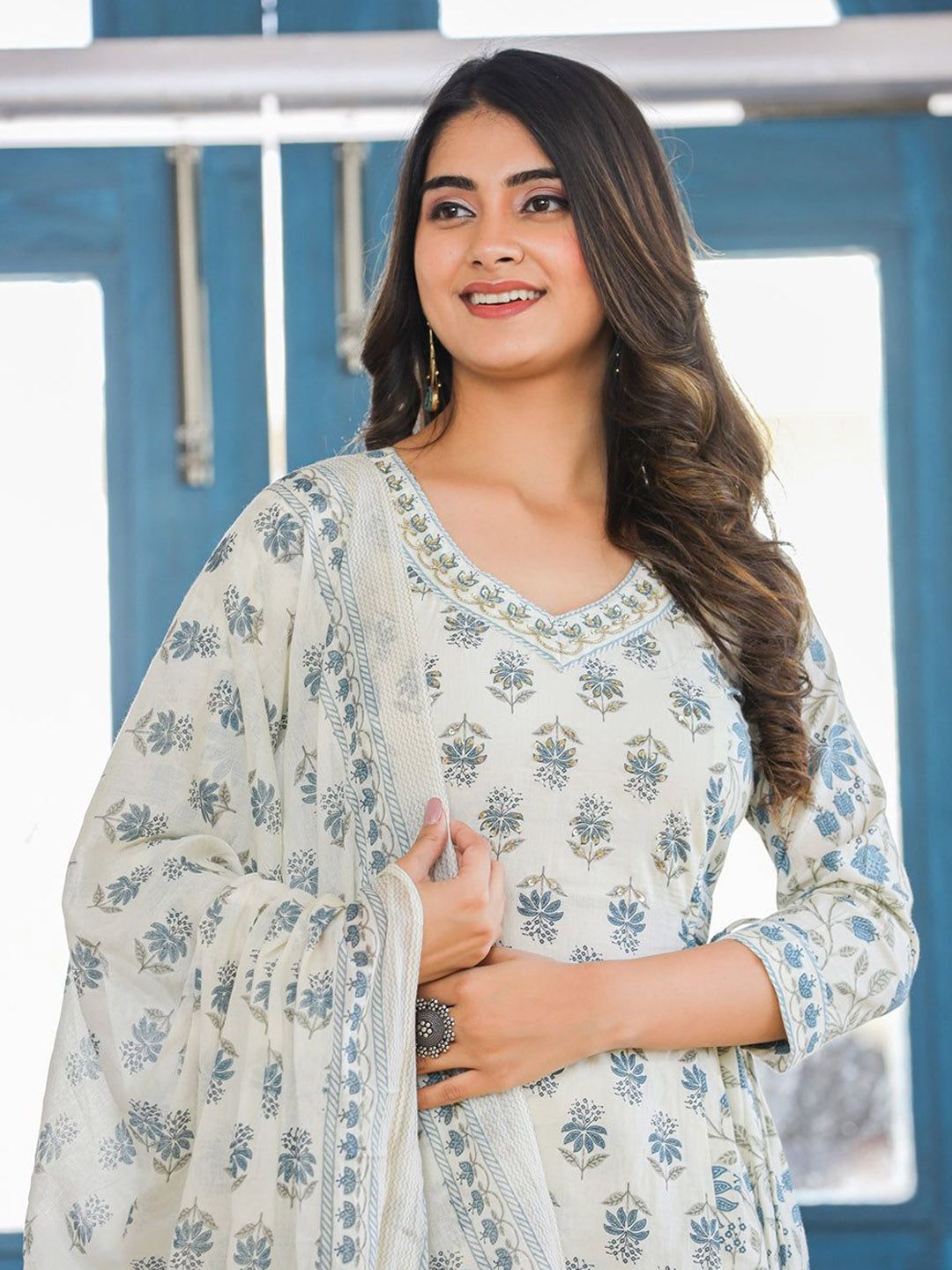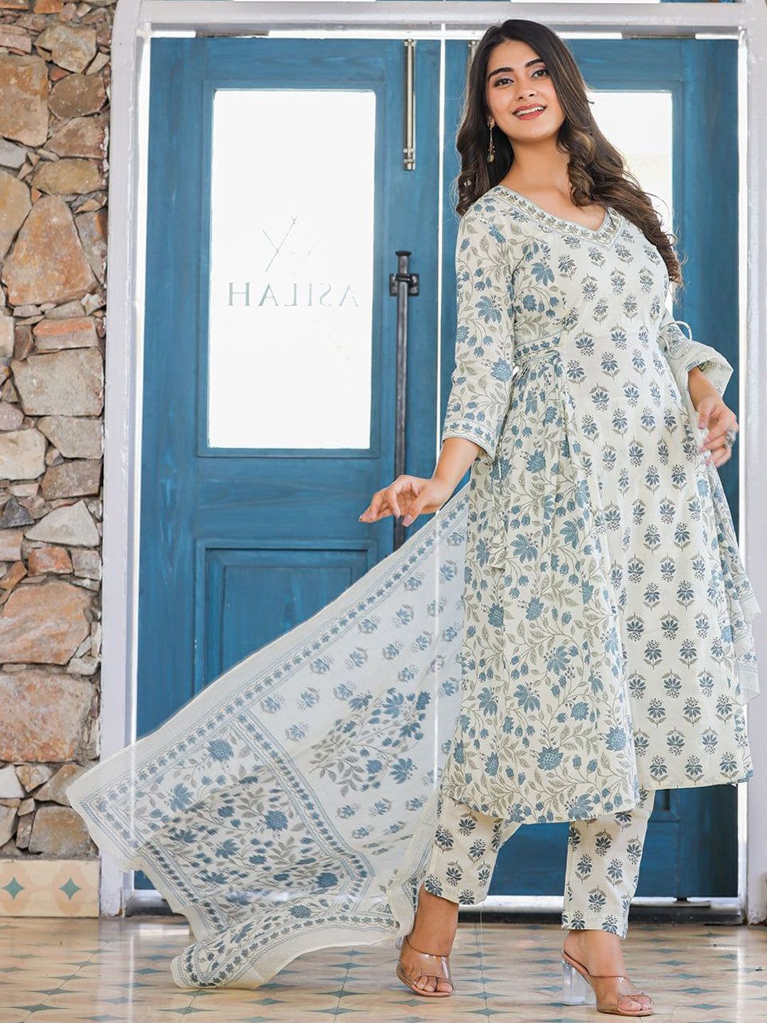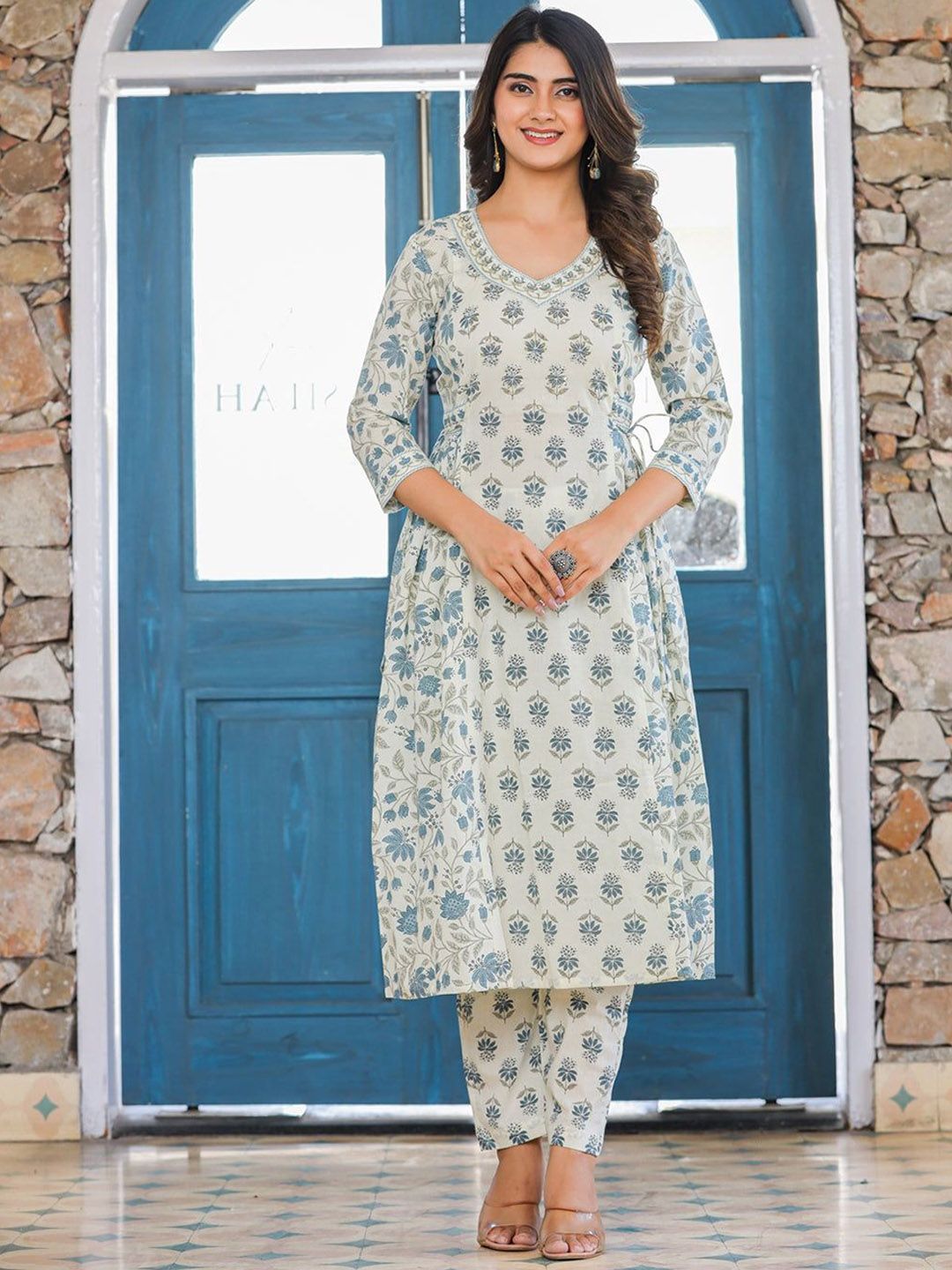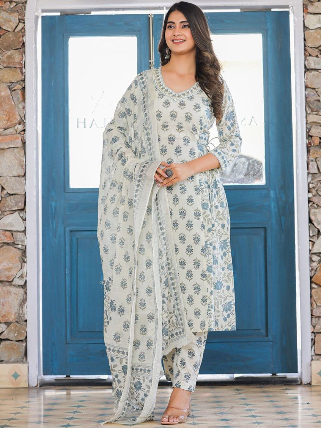 Buy this stylish THE FAB FACTORY Floral Printed V-Neck Straight Kurta With Trousers And Dupatta at Marincart Nepal. This product offers great quality and value. Perfect for those looking for the latest trends in fashion. Get yours now at unbeatable prices.