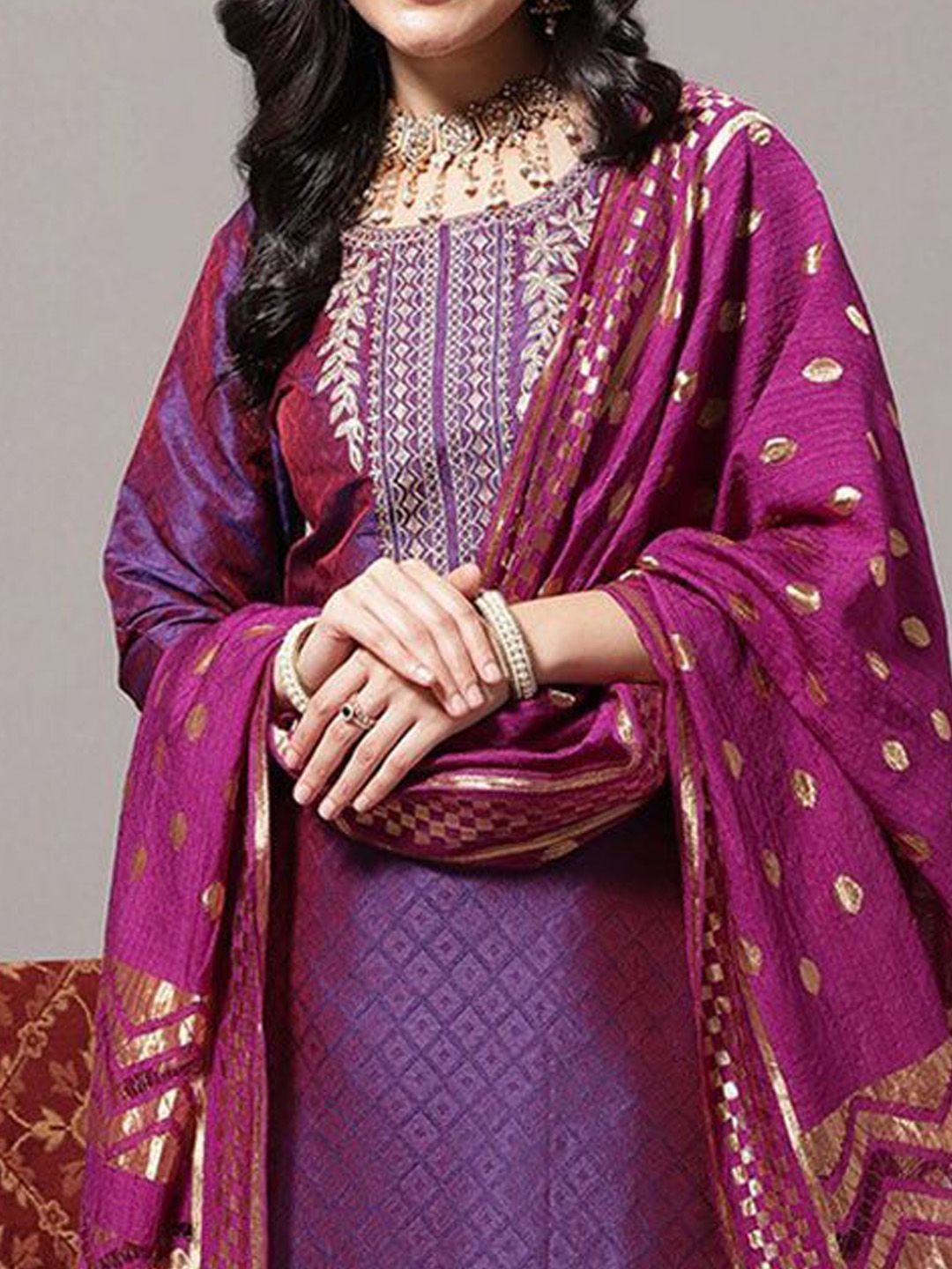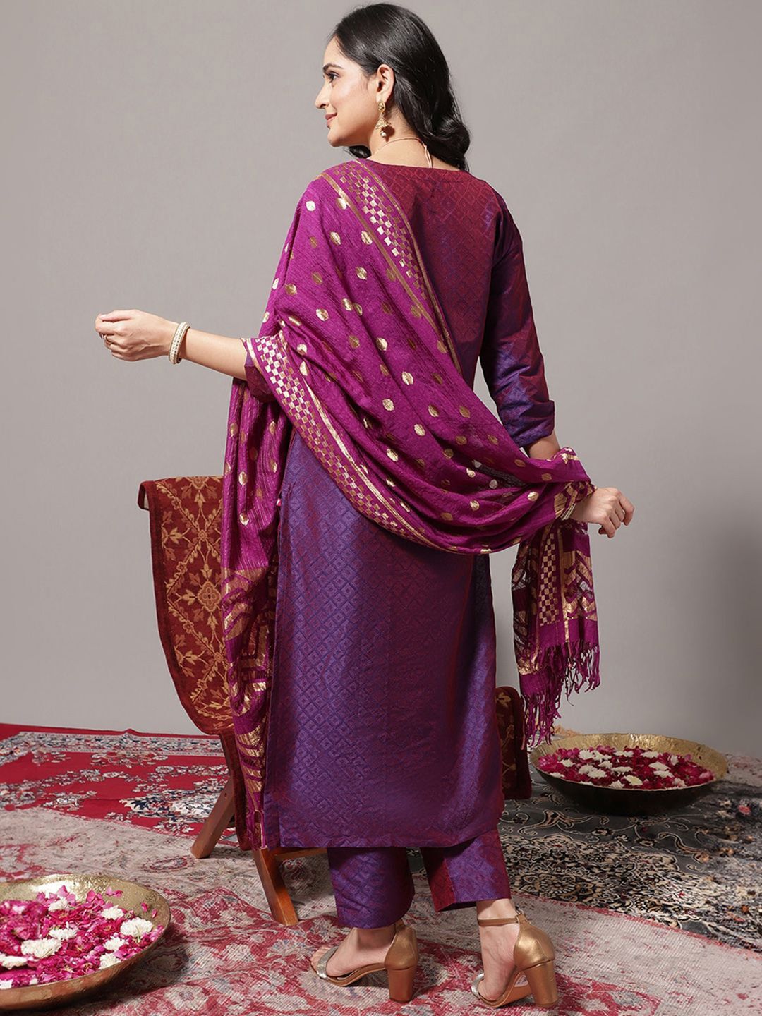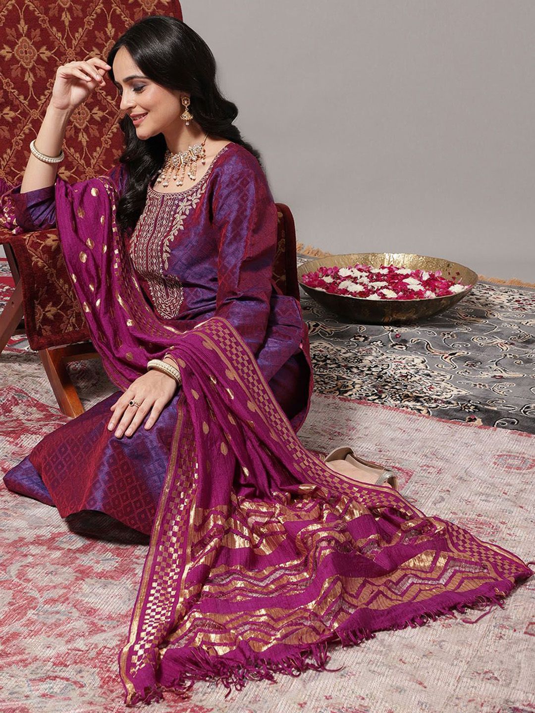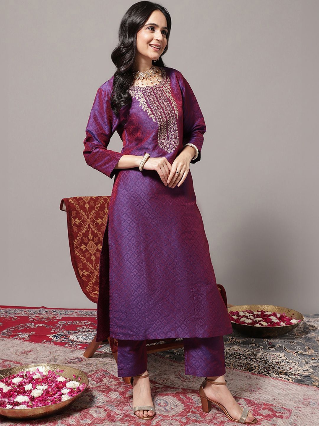 THE FAB FACTORY Woven Design Sequinned Kurta With Trousers & Dupatta