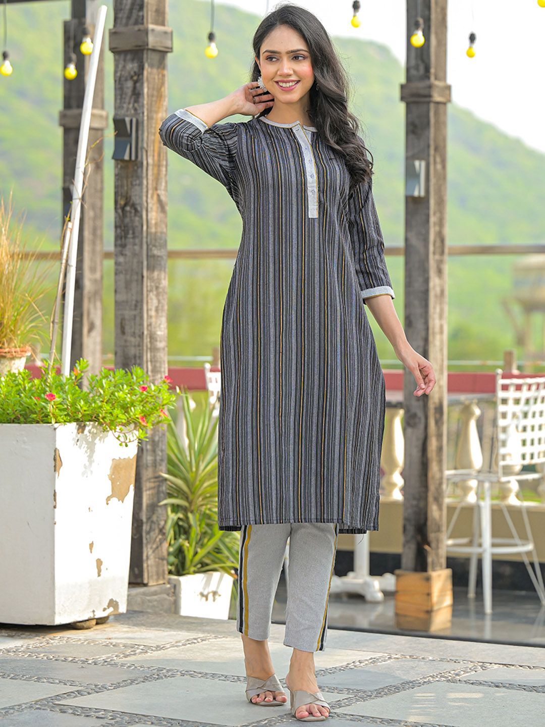 The Hope Women Striped Kurta with Trousers