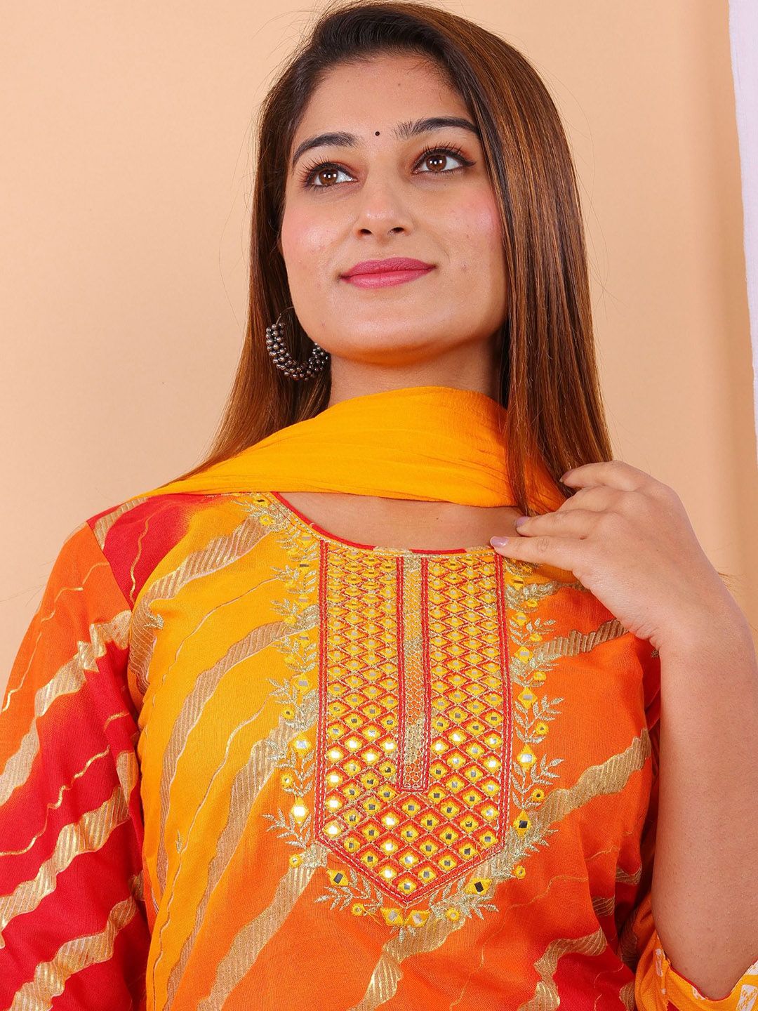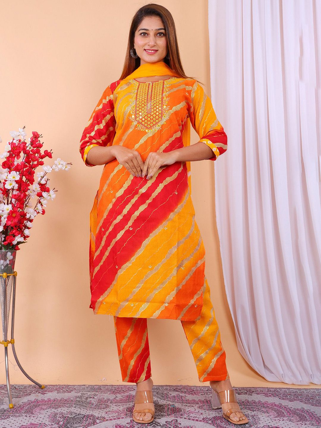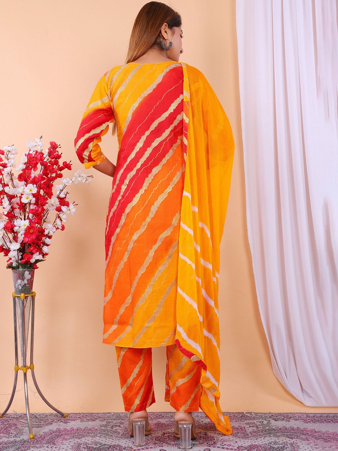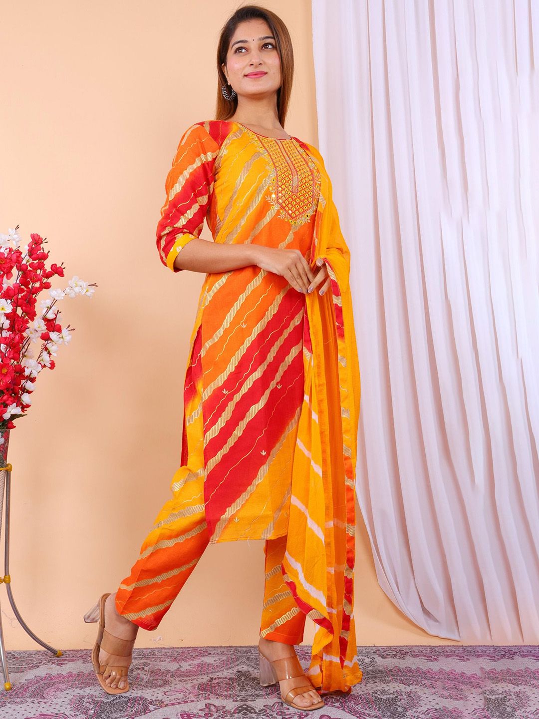 The Parth Fashion Women Ethnic Motifs Printed Round Neck Kurta with Trousers & Dupatta