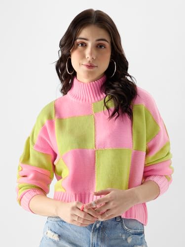 The Souled Store Colorblock: Candy Lime Women Turtle Neck Sweaters