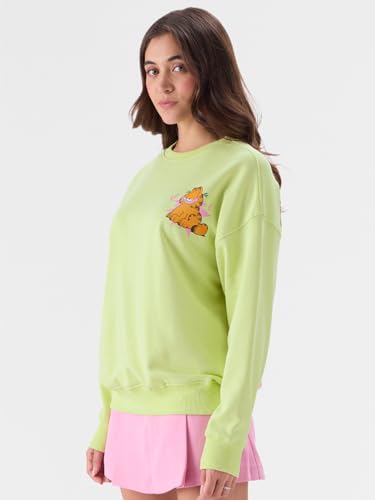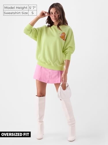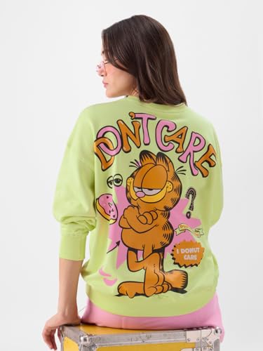 The Souled Store Cotton Blend Official Garfield: Don'T Care Club Women's Round Neck Oversized Sweatshirts