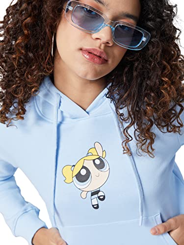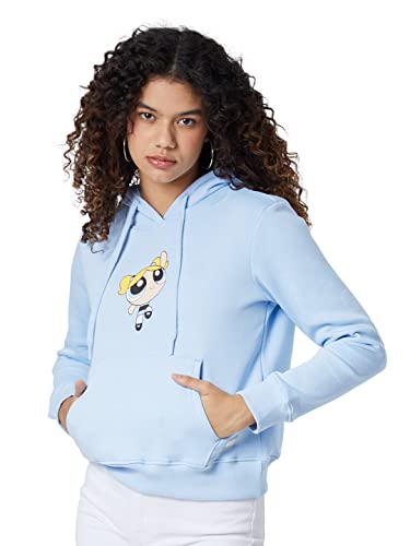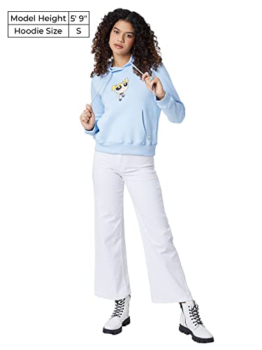 The Souled Store| Official Powerpuff Girls: Bubbles Womens and Girls Hoodies|Full Sleeve|Regular fit Graphic Printed|60% Cotton 40% Polyester Sky Blue Color Women Hoodies
