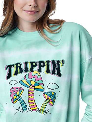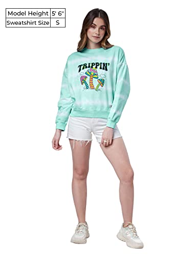 The Souled Store| Tie Dye: Trippin' Women and Girls Sweatshirts|Full Sleeve| Regular fit Graphic Printed| 100% Cotton Green Color Women Sweatshirts