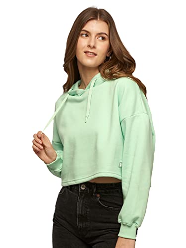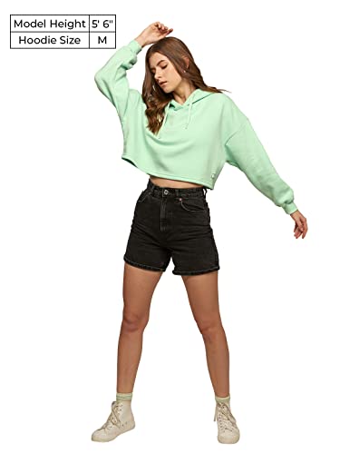 The Souled Store| TSS Originals: Mint Green Womens and Girls Cropped Oversized Hoodies|Full Sleeve|Loose fit Solid|100% Cotton Mint Green Color Women Cropped Oversized Hoodies