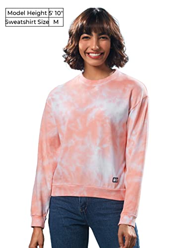 The Souled Store Women Tie Dye: Faded Peach Multicolored Solid Sweatshirts