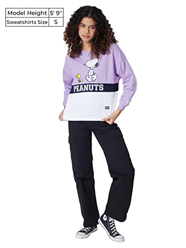 The Souled Store|Official Peanuts: Snoopy & Crew Women and Girl Sweatshirts|Full Sleeve| Loose fit Graphic Printed| 60% Cotton 40% Polyester Lavender and White Color Oversized Sweatshirts
