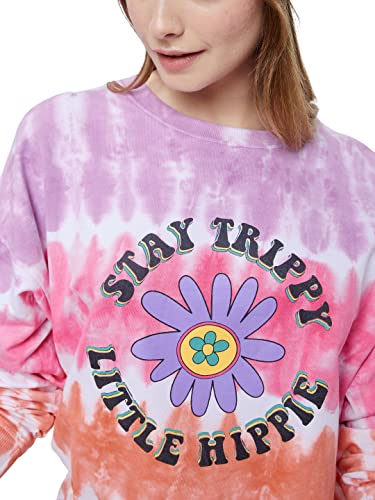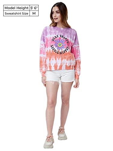 The Souled Store|Official Tie Dye: Stay Trippy Little Hippie Women and Girls|Full Sleeve| Loose fit Graphic Printed| 100% Cotton Multicolored Women Oversized Sweatshirts