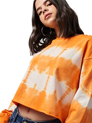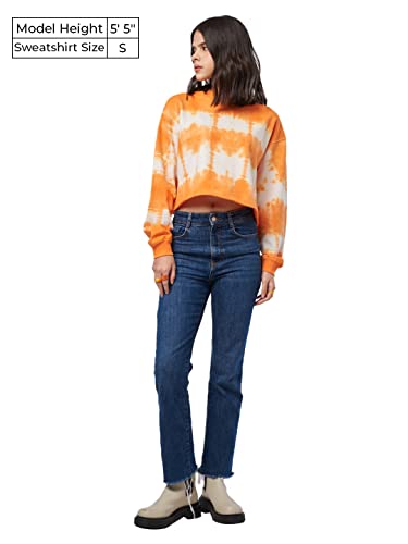 The Souled Store|Tie Dye: Orange Squeeze Women and Girl Oversized Sweatshirts|Full Sleeve| Loose fit Solid| 80% Cotton 20% Polyester Orange Color Women Oversized Sweatshirts