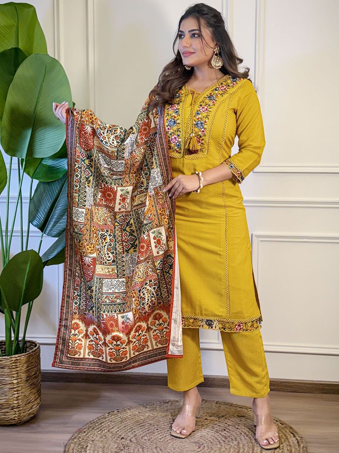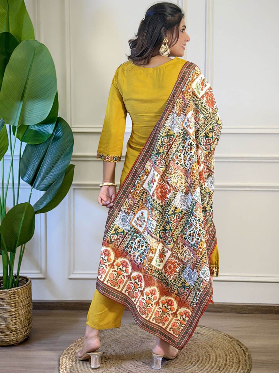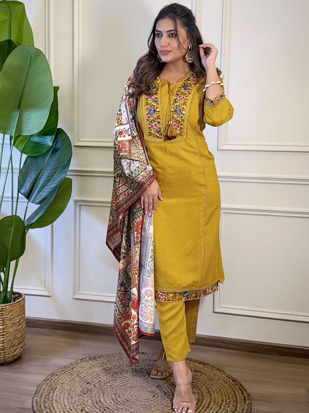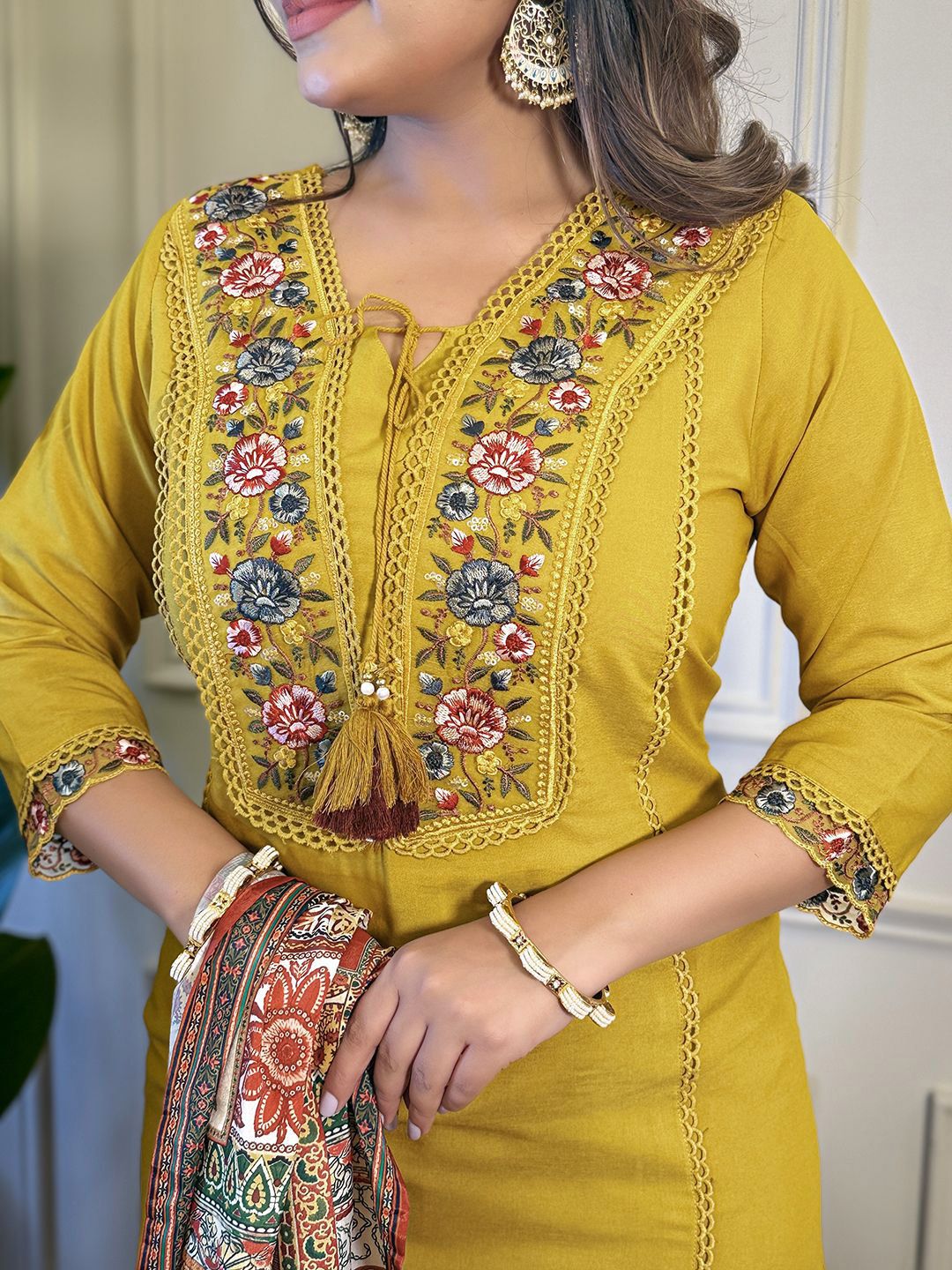 THE52 Floral Yoke Design V-Neck Straight Kurta With Trousers & Dupatta
