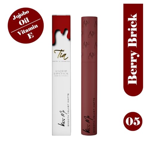 Tia Beauty's Kiss Me Liquid Lipstick, Berry Brick Shade, Long-Lasting, Hydrating, Cruelty-Free, Vegan