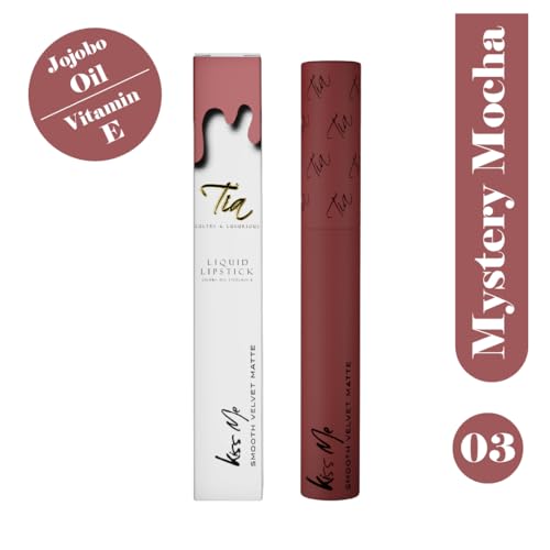 Tia Beauty's Kiss Me Liquid Lipstick, Mystery Mocha Shade, Long-Lasting, Hydrating, Cruelty-Free, Vegan, Paraben-Free
