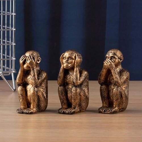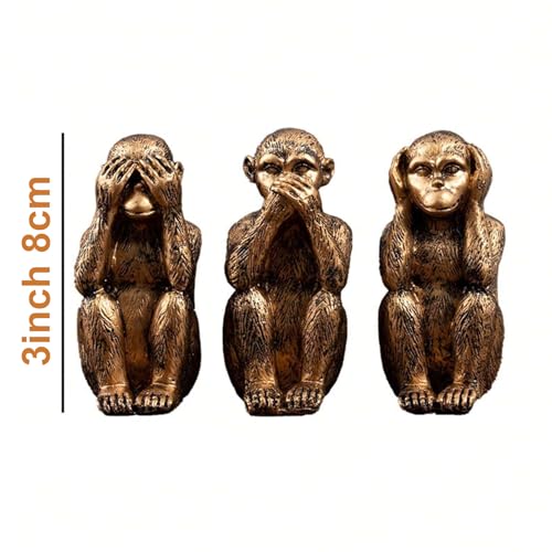 Packages Include:- 3 Pcs Monkey Statue, Material : Resin, Size : 8cm (Small Size) Handmade Crafts & Unique Design : "Three Monkeys" embody the principles of ethics, non-violence, and self-discipline.The trio conveys a moral lesson of staying away from evil thoughts, actions, and words. Design Concept: See No Evil: The first monkey covers its eyes with both hands, symbolizing the idea of avoiding evil by not seeing it. Hear No Evil: The second monkey covers its ears with both hands, representing avoiding evil by not listening to it. Speak No Evil: The third monkey covers its mouth with both hands, symbolizing avoiding evil by not speaking it. Perfect Gift Idea : You can use it as a Christmas gift, Valentine's Day gift, Diwali, Aanniversary and Birthday gift to your Friends, Colleagues, and Family, a very meaningful gift. Home Decor : Creative home decoration and interesting sculpture decoration choice. Suitable for bookcase, desk, tabletop, wainscoting, window, porch. You Can also place it in the office, living room, counter, study, office, Home decor items for living room, showpiece for table top, showpiece for home decor living room, statue for home decor, decorative items for home, or company, to enhance the artistic atmosphere of the environment.