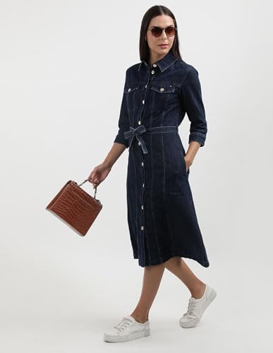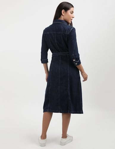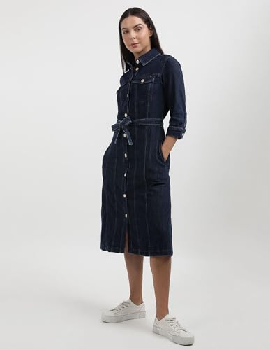 Tommy Hilfiger Women's Cotton Blend Fit and Flare Below The Knee Casual Dress