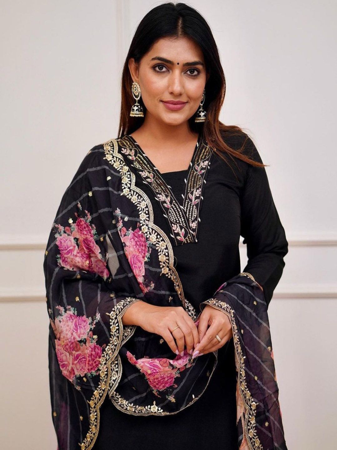 Buy this stylish TRAHIMAM Floral Yoke Design V-Neck Chanderi Silk Straight Kurta With Trousers & Dupatta at Marincart Nepal. This product offers great quality and value. Perfect for those looking for the latest trends in fashion. Get yours now at unbeatable prices.