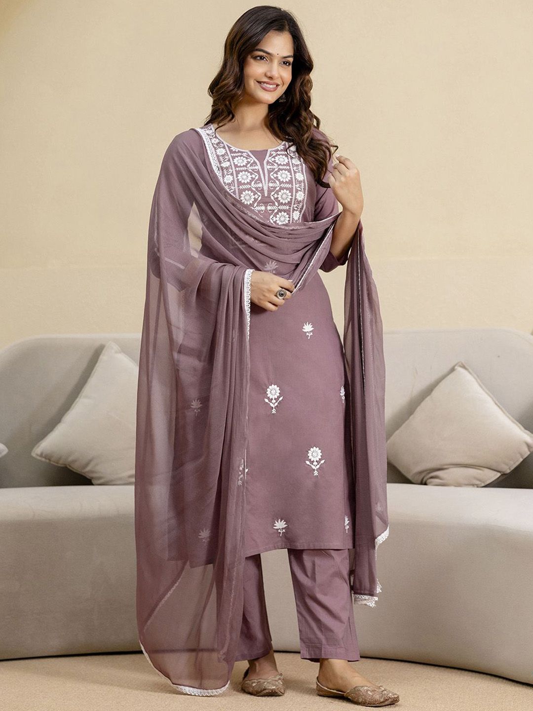 Trendmalls Women Cotton Embroidery Work Kurta Pant with Dupatta