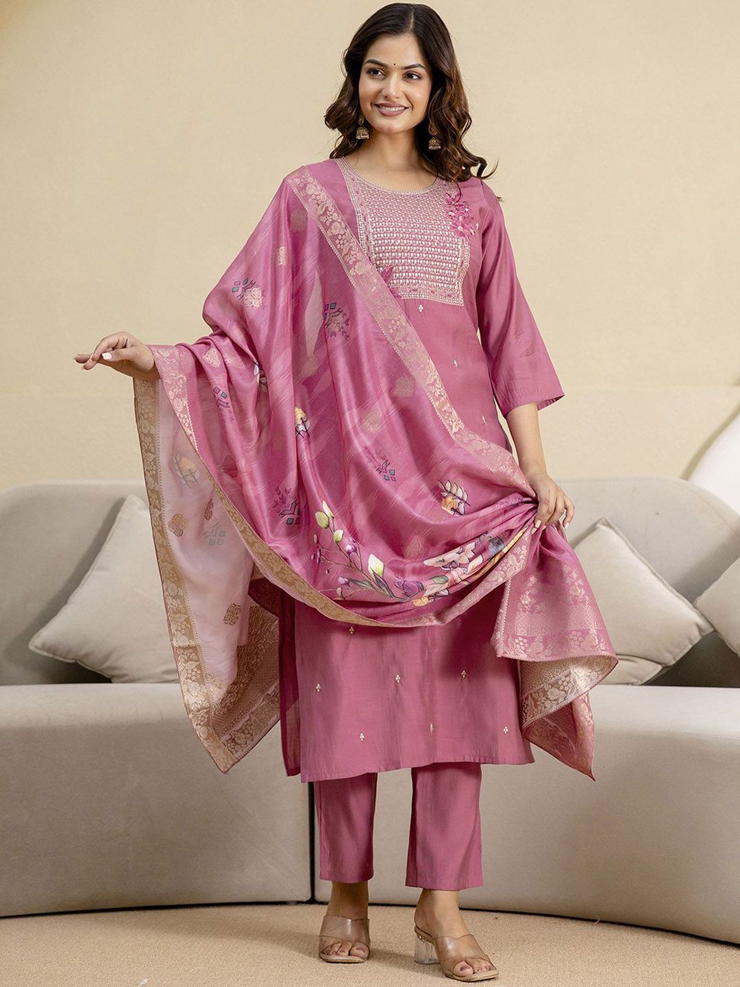 Trendmalls Women Floral Embroidered Sequinned Kurta with Trousers & Dupatta