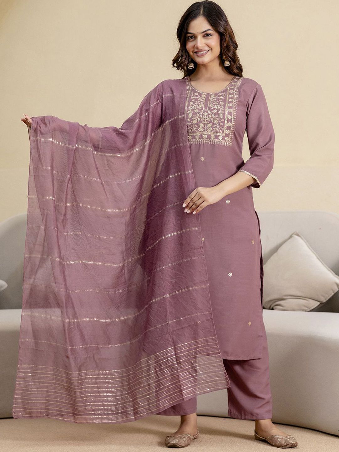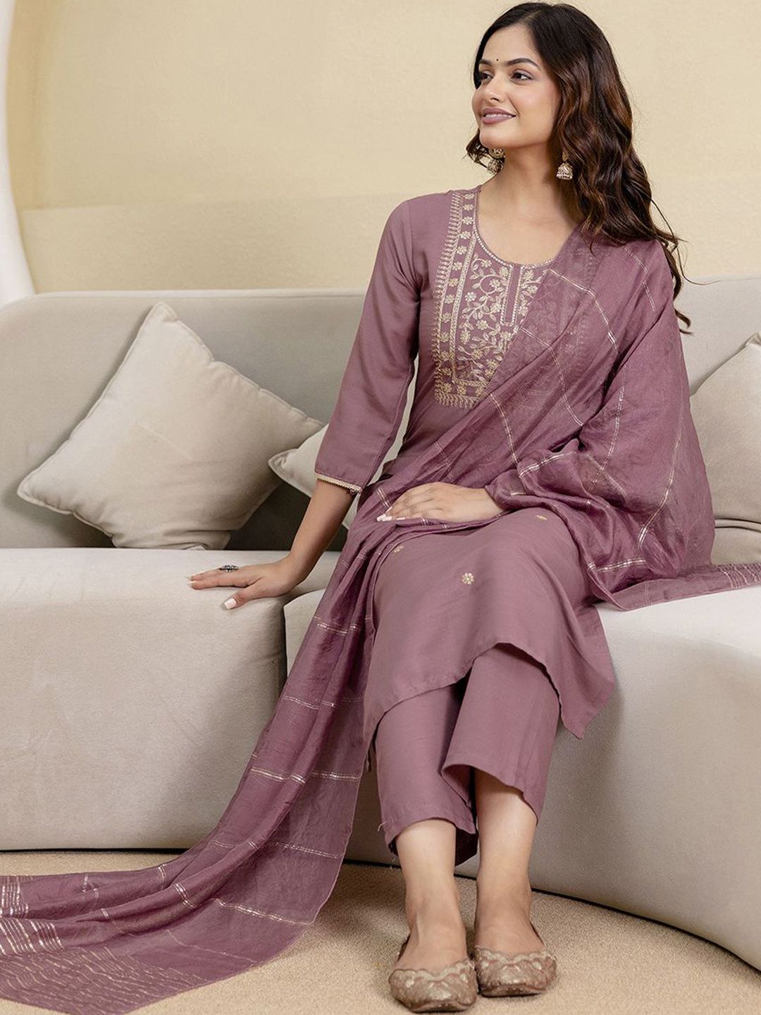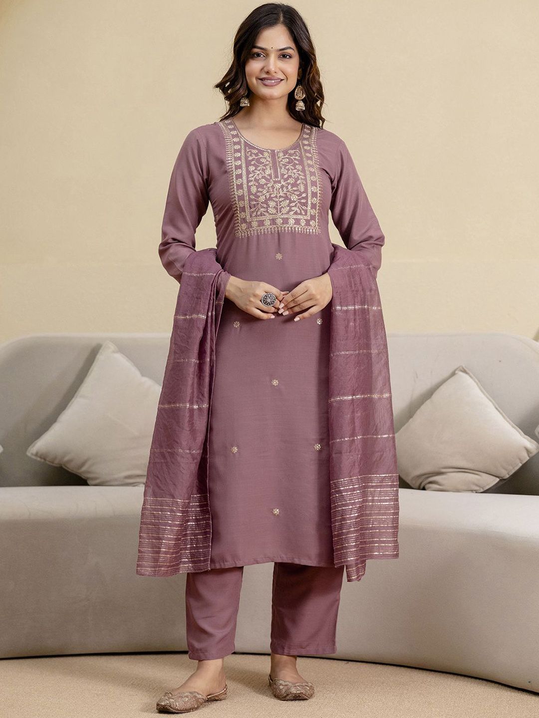 Trendmalls Women Woven Design Embroidered Kurta with Trousers & Dupatta