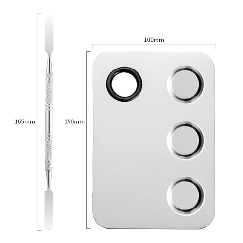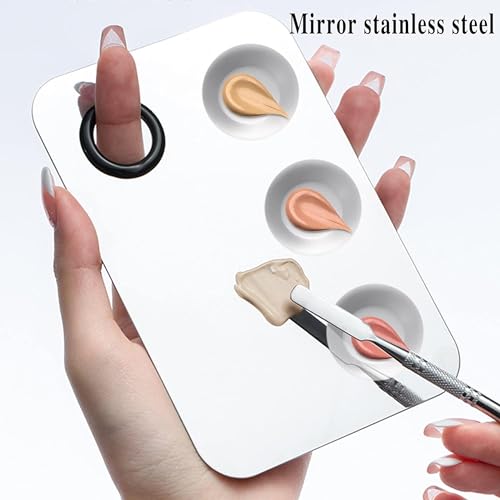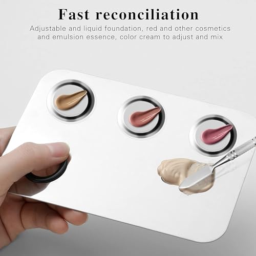 Trendy Look Makeup Palette, Stainless Steel Cosmetic Palette 3-well Blending Palettes Artist Mixing Palette with Spatula Tool for Mixing Foundation