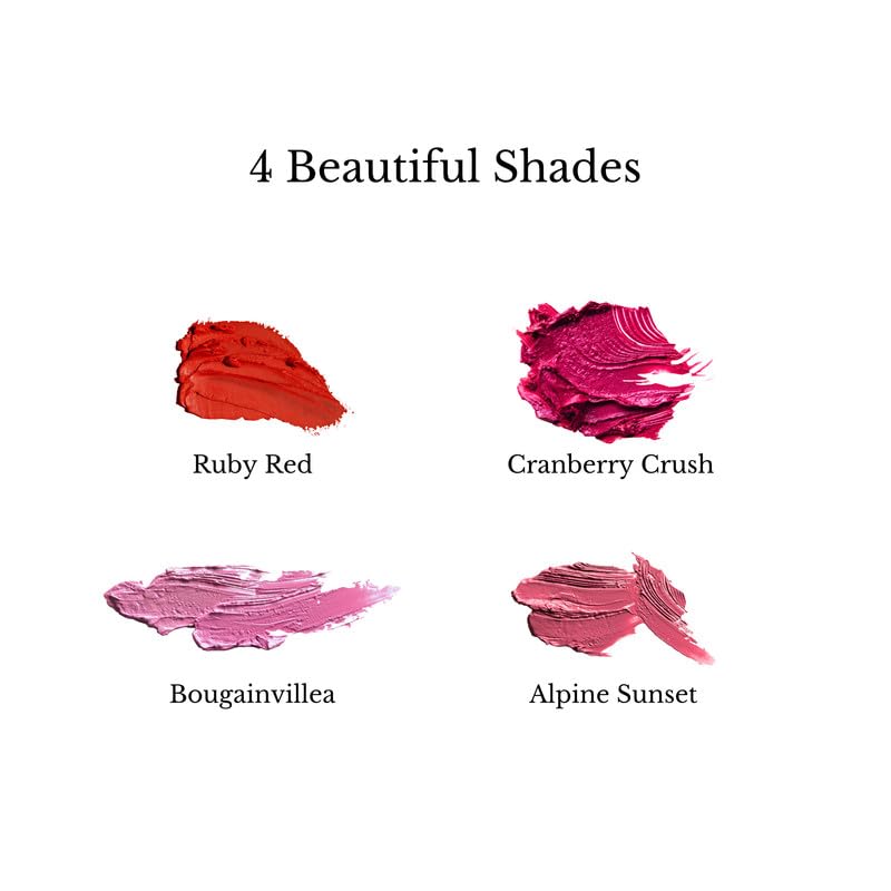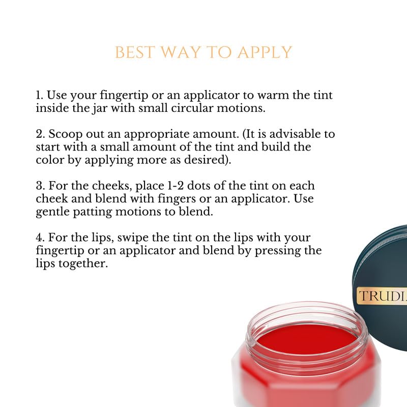 The multipurpose product that can be used on the lips, cheeks and eyelids. Gives a natural flush of colour to the skin and has a buildable sheen Long-lasting product that hydrates and nourishes the skin Enriched with the goodness of jojoba oil, Watermelon Seed Oil, Rose mary Oil, Vitamin E, Olive Oil, RoseShip Oil and Almond oil Free from colour, GMO, SLS, parabens and synthetic fragrance oils Stays on for at least 5-6 hours without the need to re-apply. Multipurpose tint for lips, cheek & eyelids | Natural flushing glow | Long-lasting nourishment | Blended with natural & essential oils