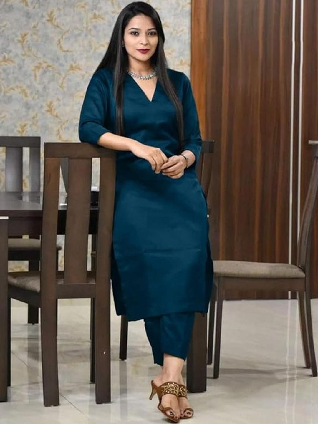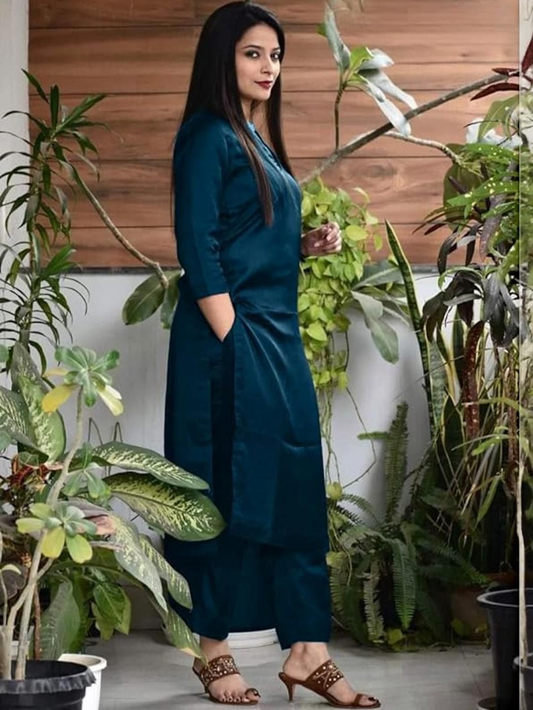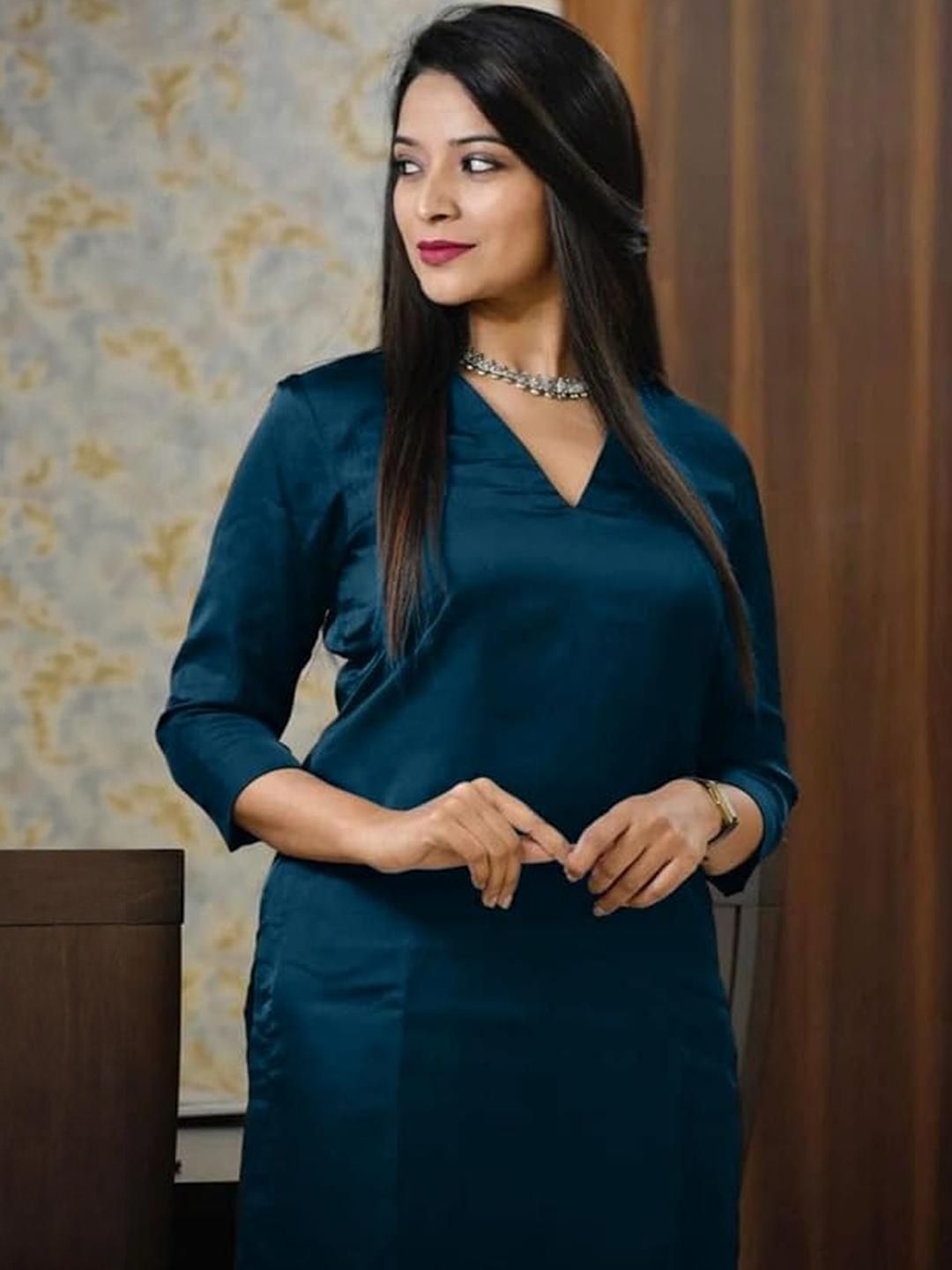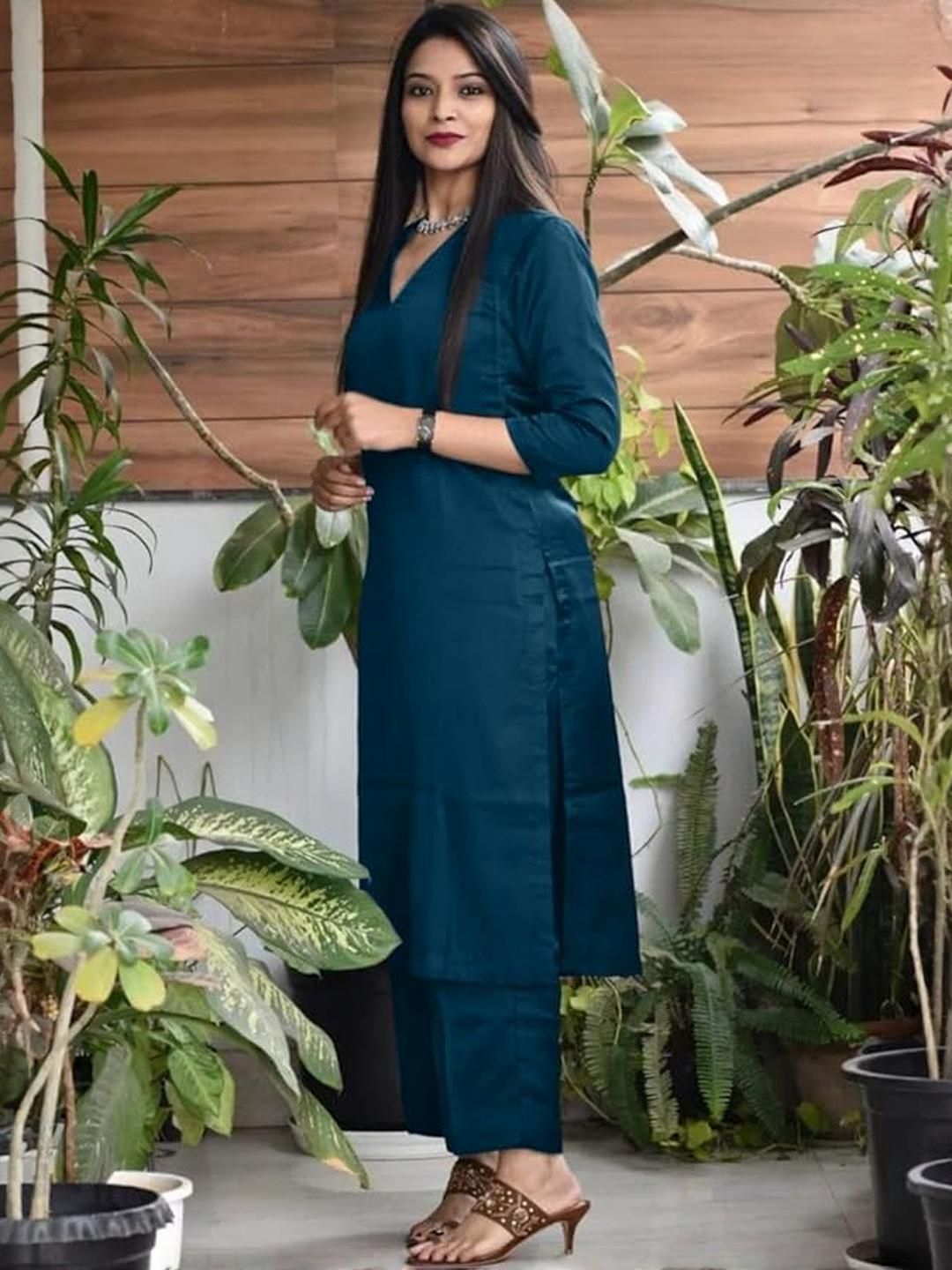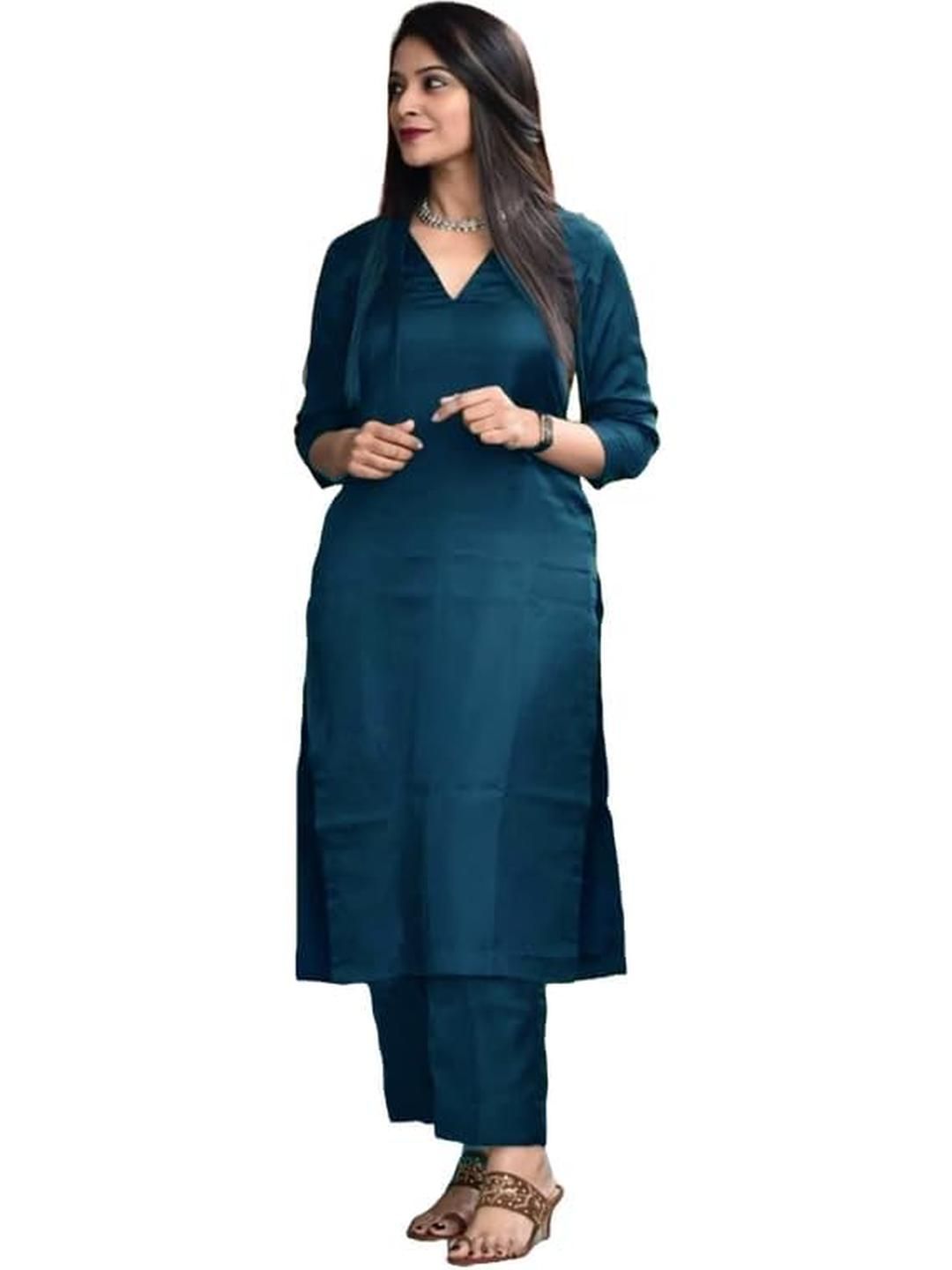 TRY LUCK FASHION Teal Viscose Rayon Kurta Sets