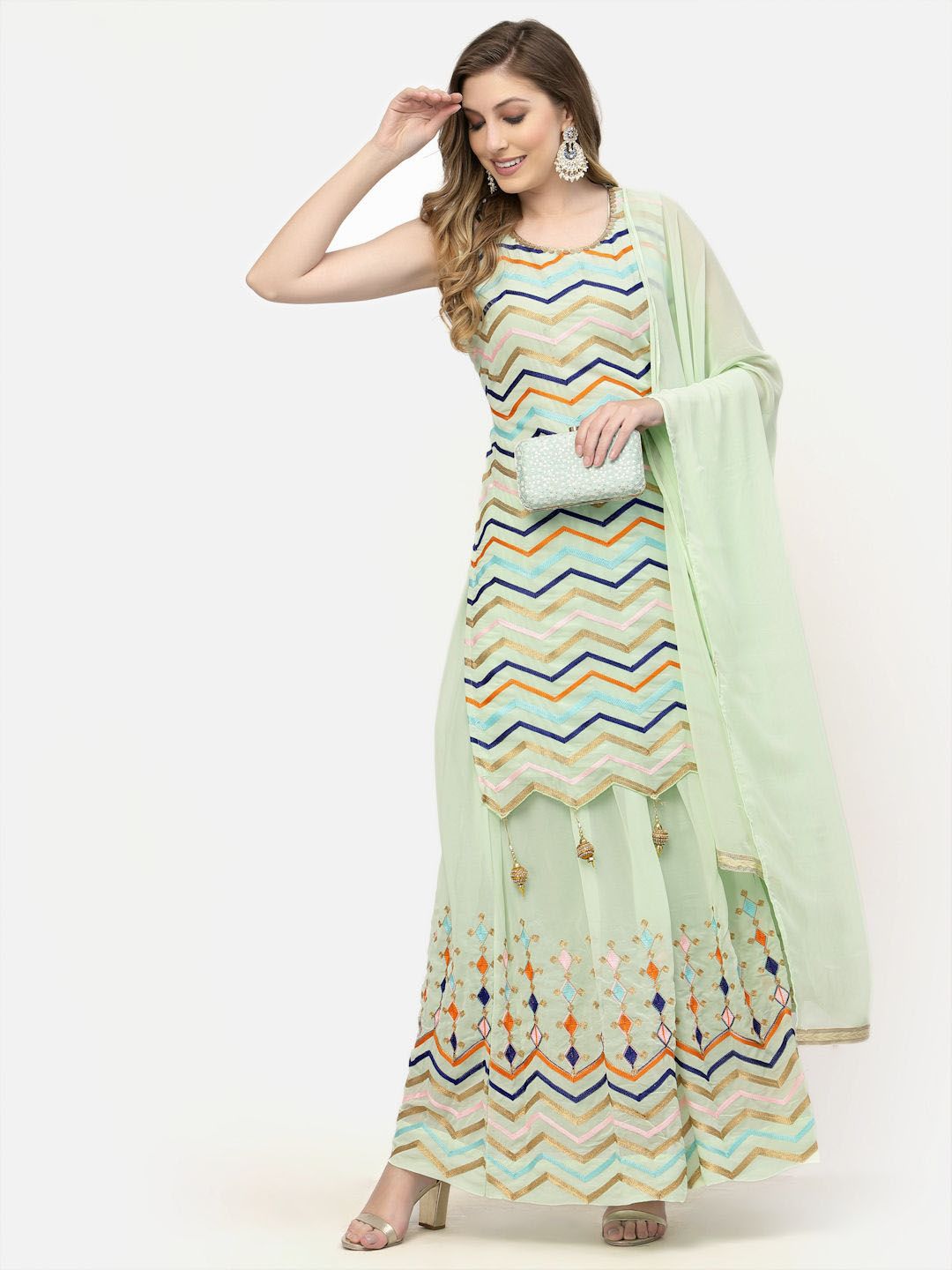 TS LIFESTYLE Women Striped Printed Kurta with Skirt & Dupatta