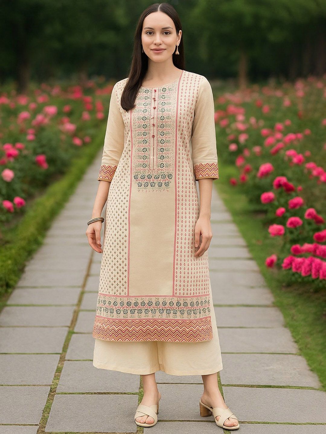 Tulsattva Women Floral Printed Kurta with Palazzos