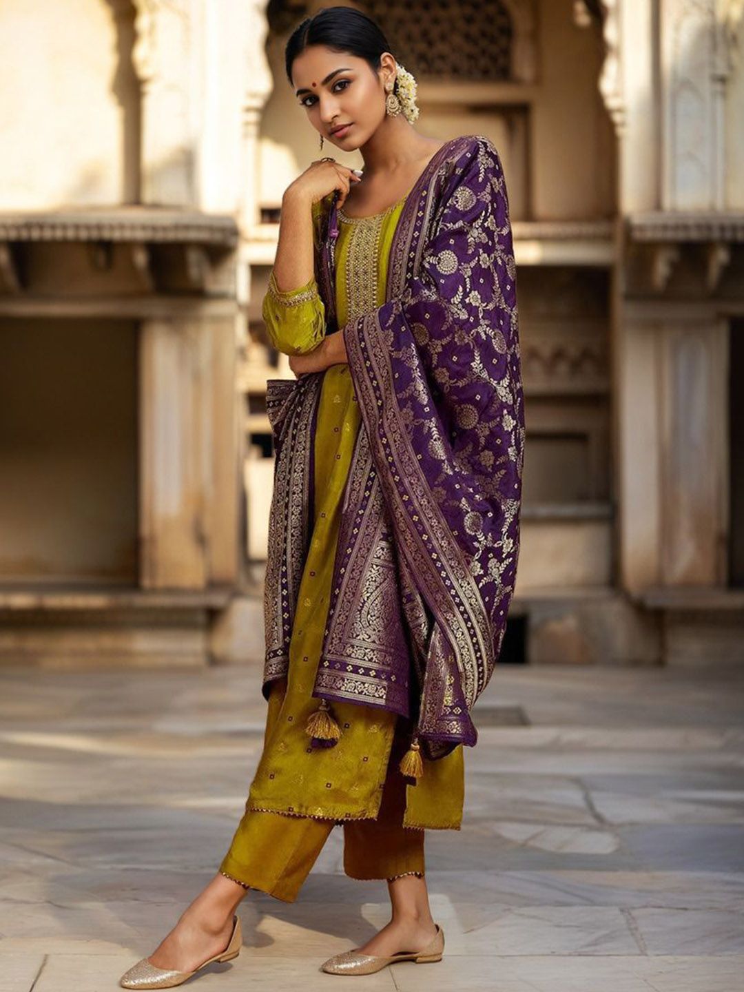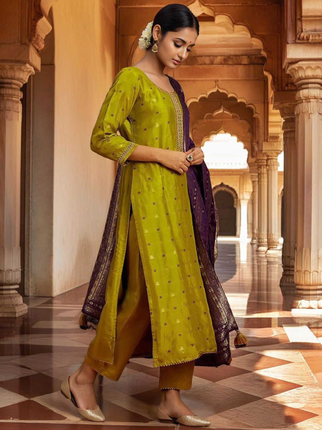 Buy this stylish Twika Women Ethnic Motifs Woven Design Regular Kurta with Trousers & Dupatta at Marincart Nepal. This product offers great quality and value. Perfect for those looking for the latest trends in fashion. Get yours now at unbeatable prices.