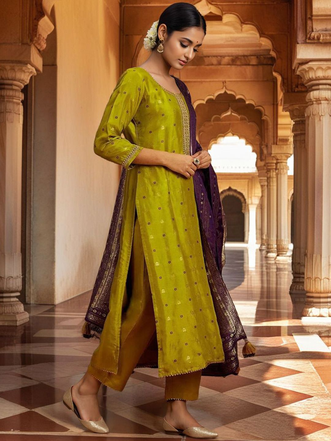 Twika Women Floral Embroidered Kurta with Trousers & With Dupatta