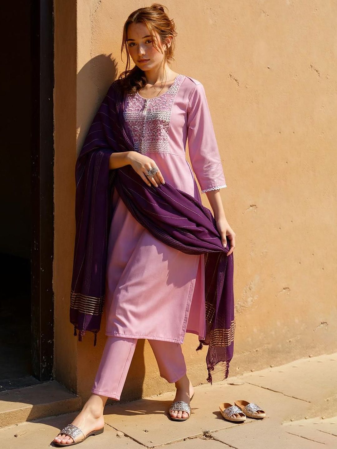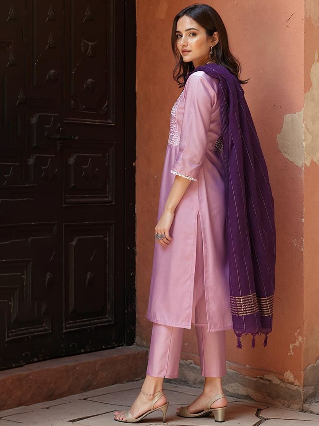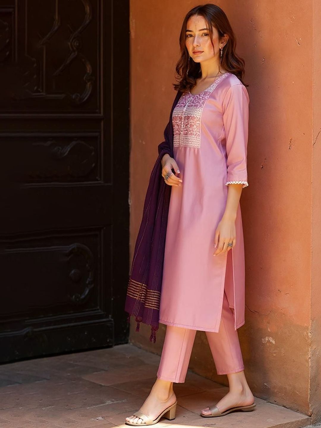 Twika Women Floral Yoke Design Kurta with Trousers & Dupatta