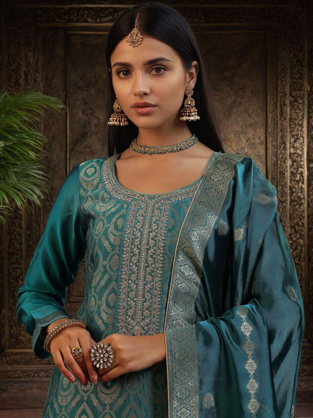 Twika Women Woven Design Embroidered Kurta with Trousers & Dupatta