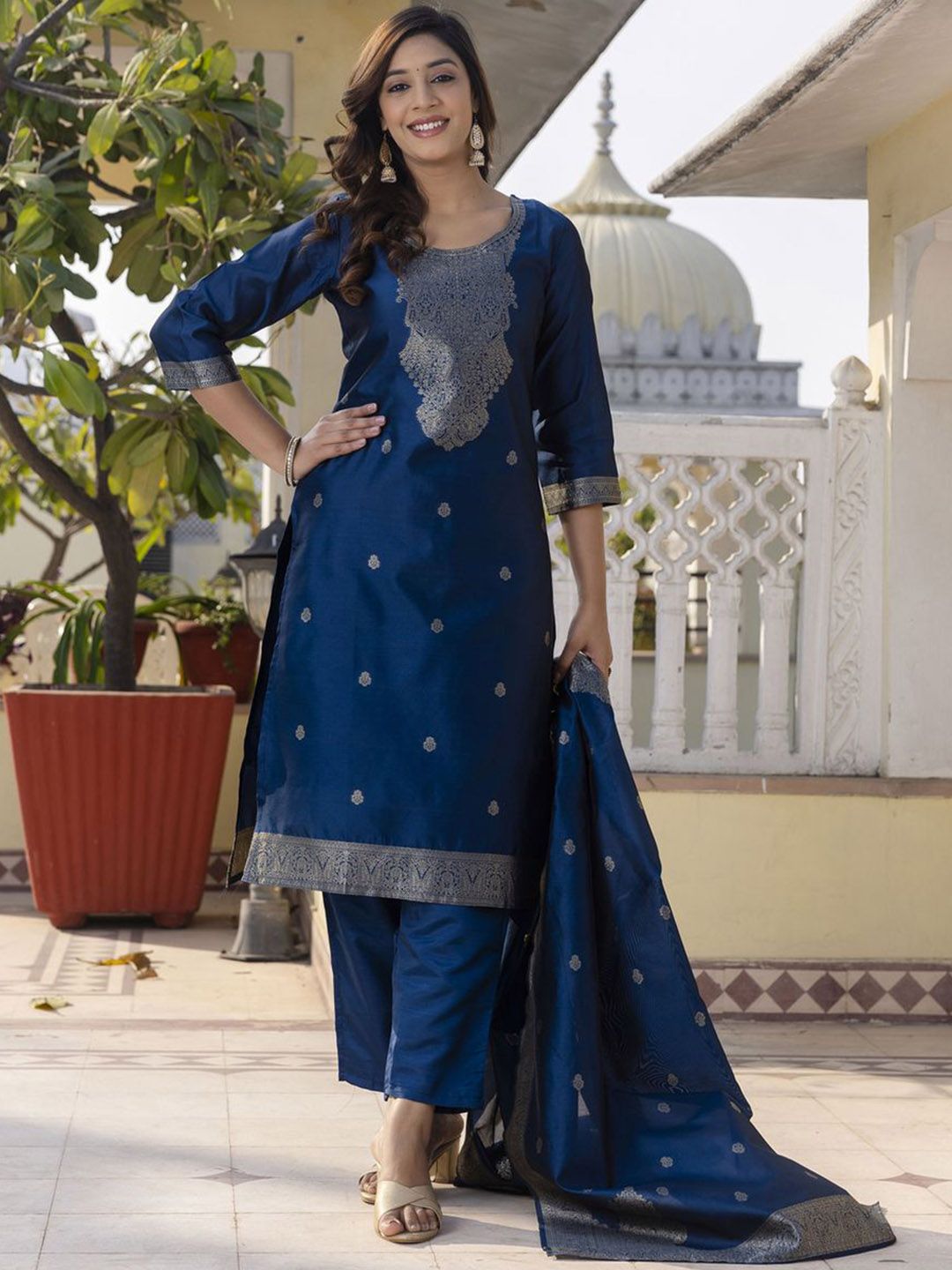 Twika Women Woven Design Kurta with Trousers & Dupatta