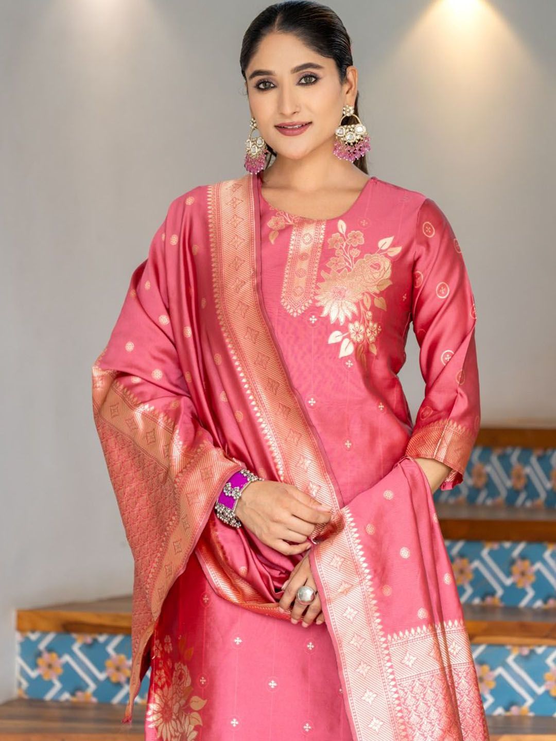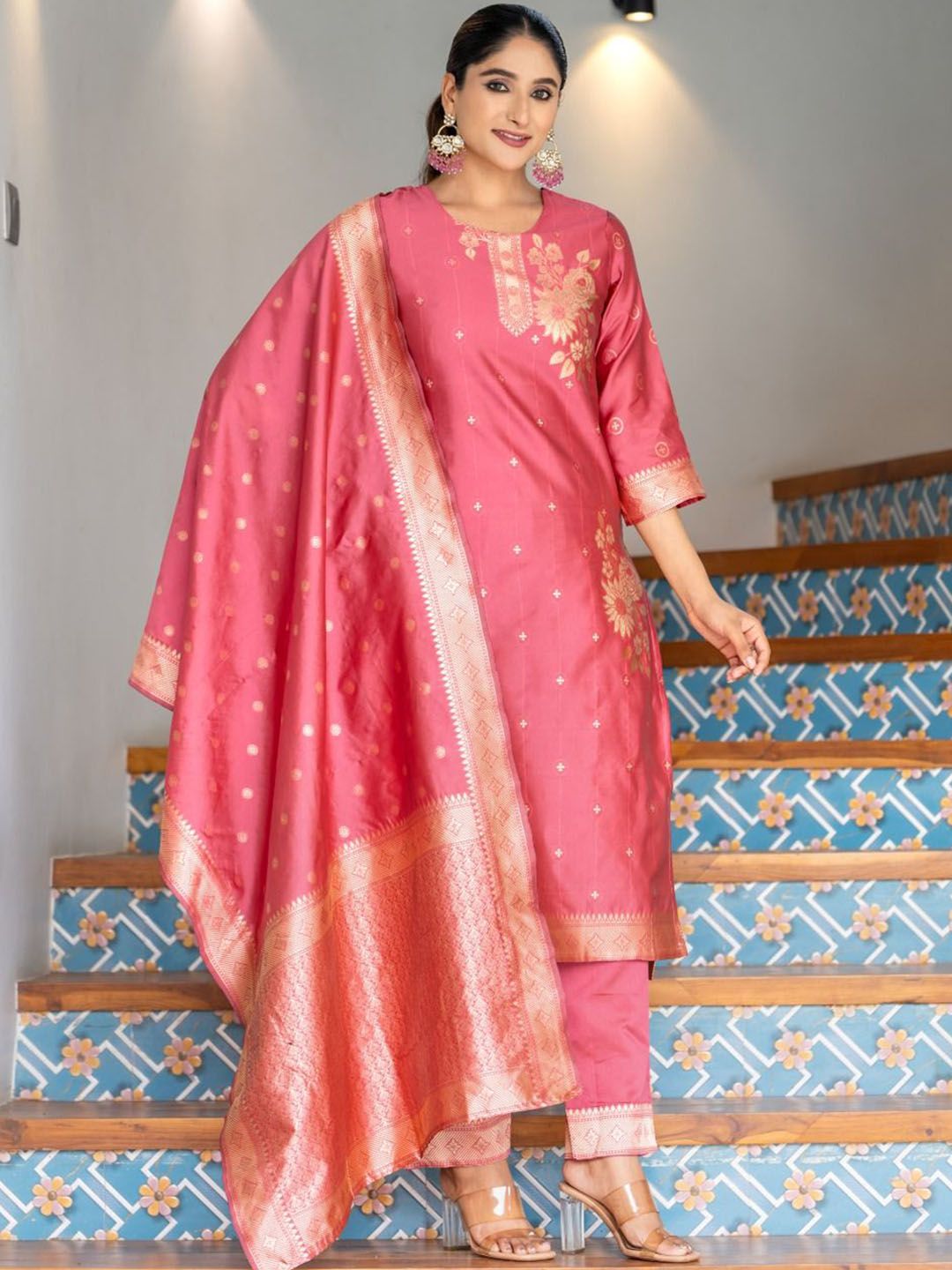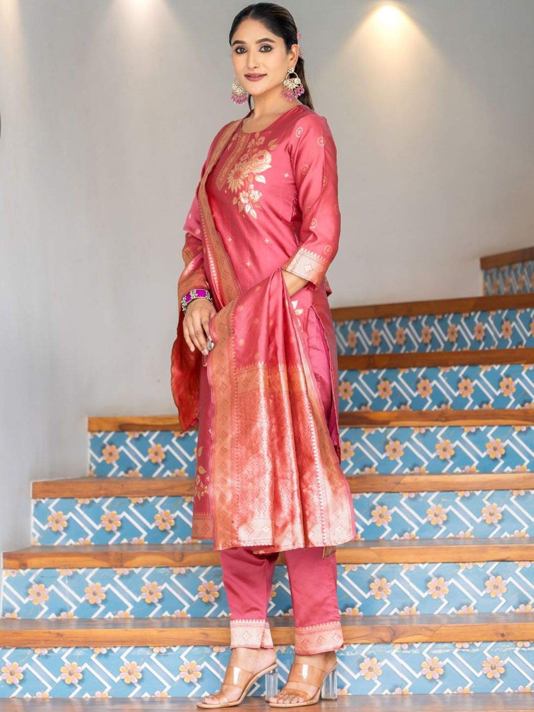 Twika Women Woven Design Kurta with Trousers & Dupatta