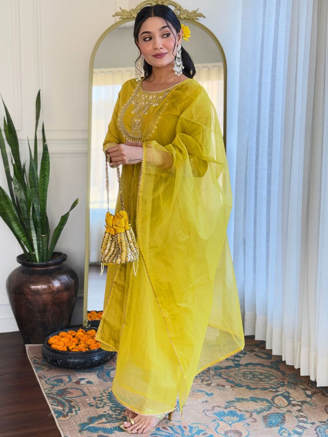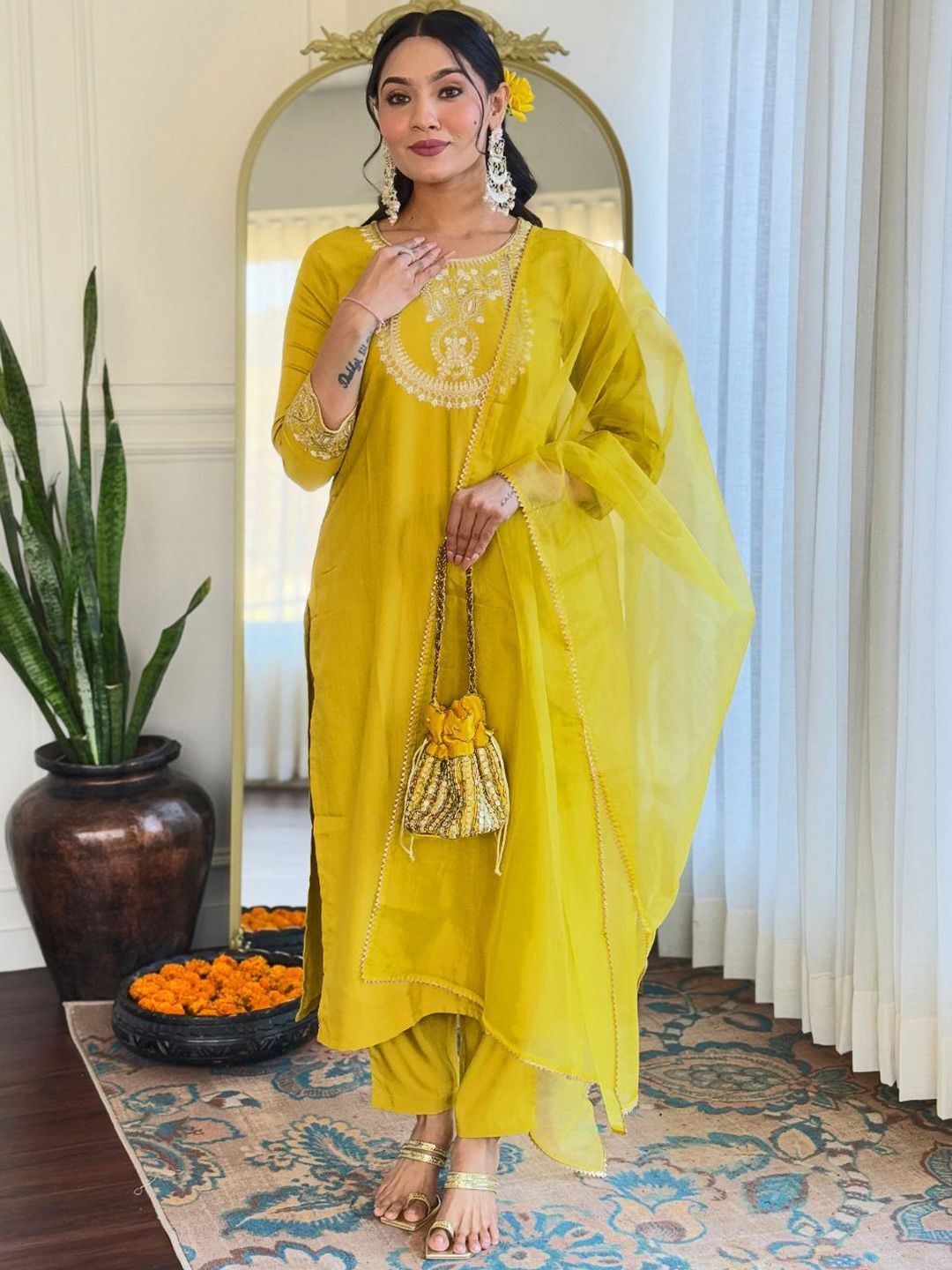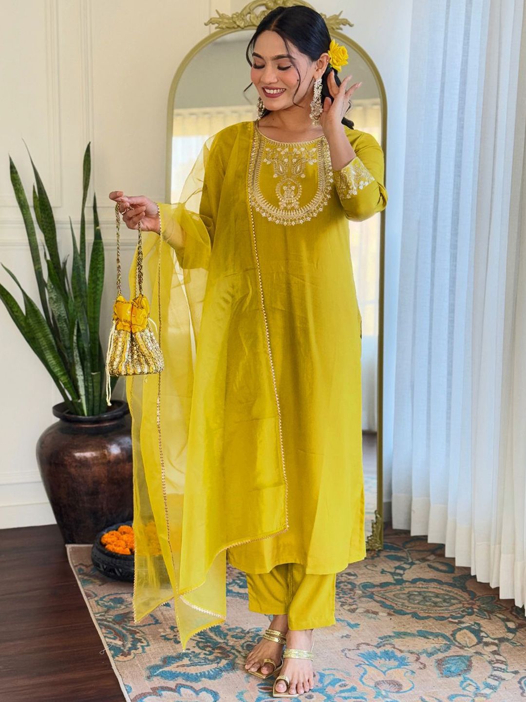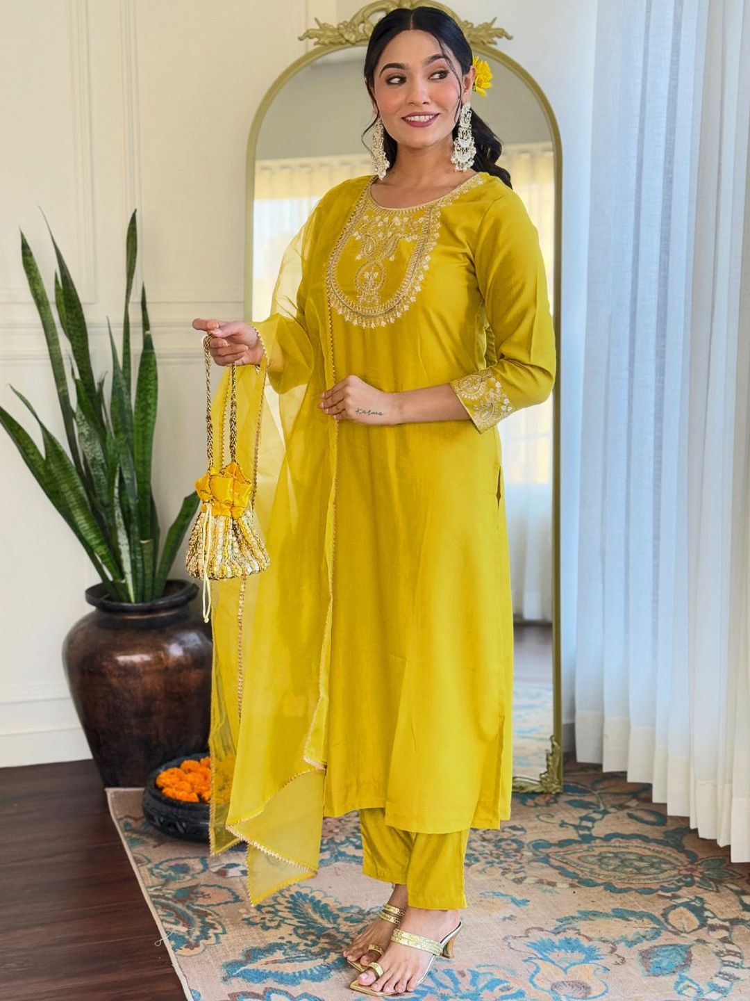 TWINS LADY Ethnic Motifs Yoke Design Round Neck Straight Kurta With Trousers And Dupatta