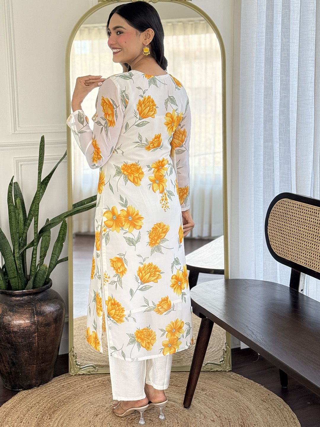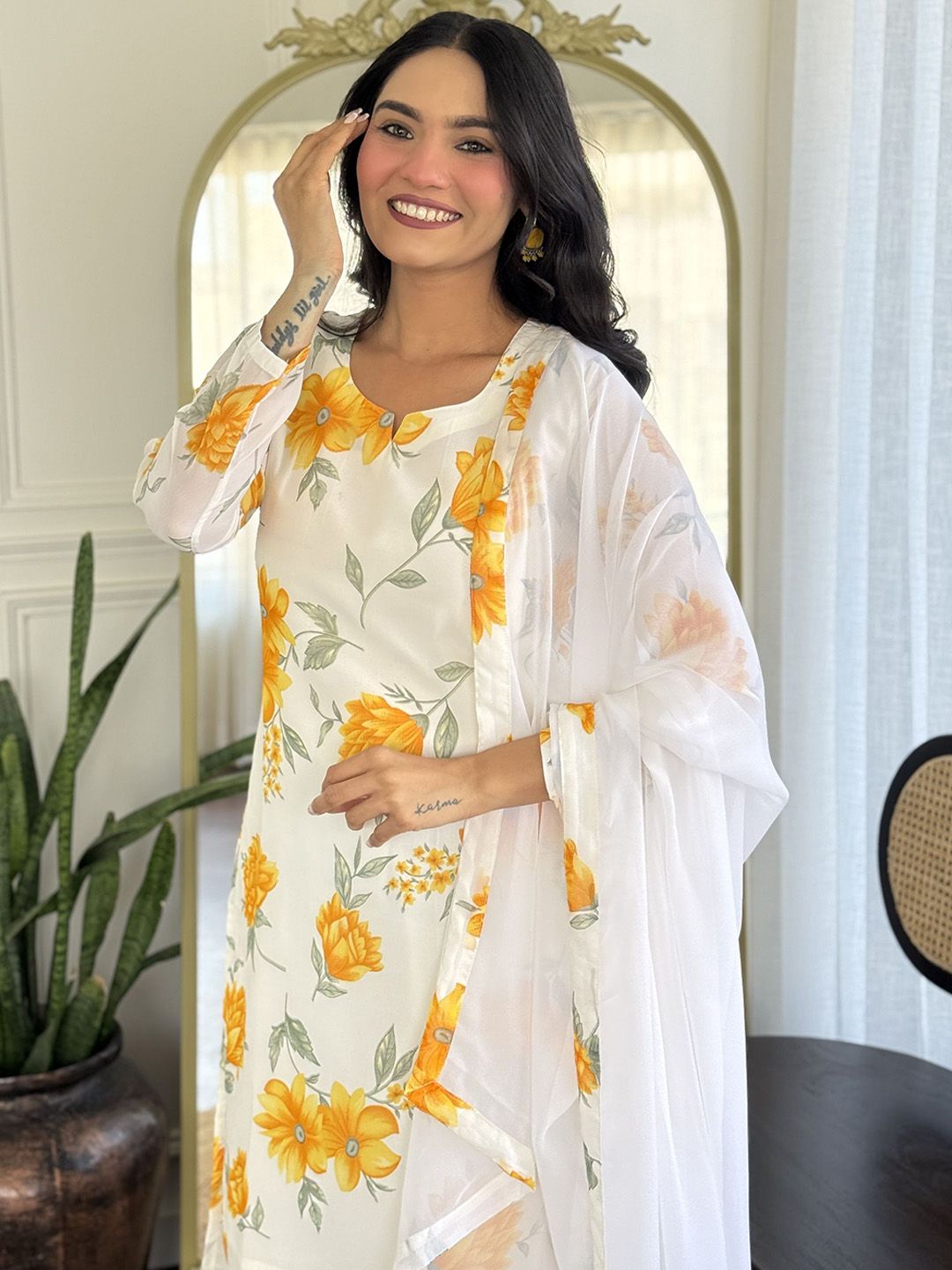 TWINS LADY Floral Printed Georgette Notch Neck Straight Kurta With Trousers & Dupatta