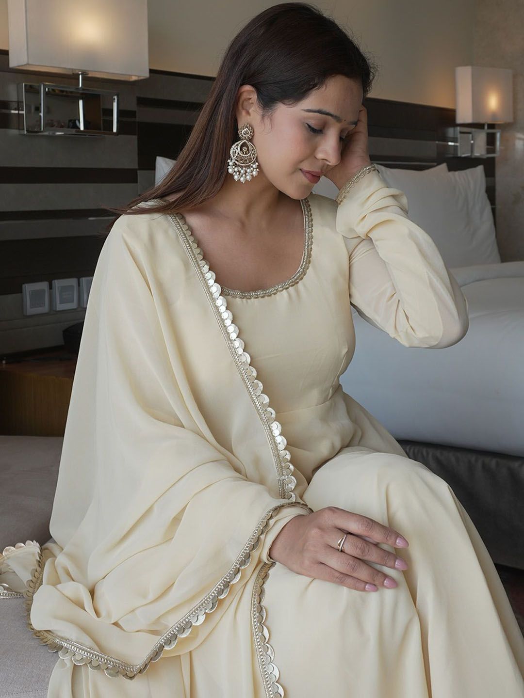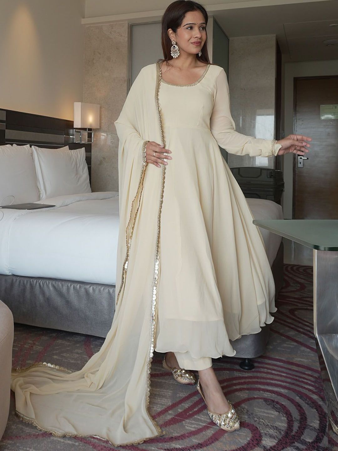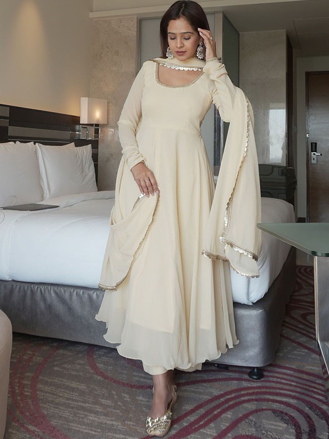TWINS LADY Round Neck Angrakha Kurta With Trousers & Dupatta