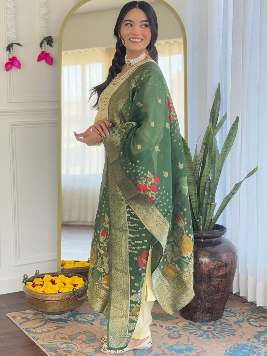 TWINS LADY Women Ethnic Motifs Embroidered Kurta with Trousers & With Dupatta