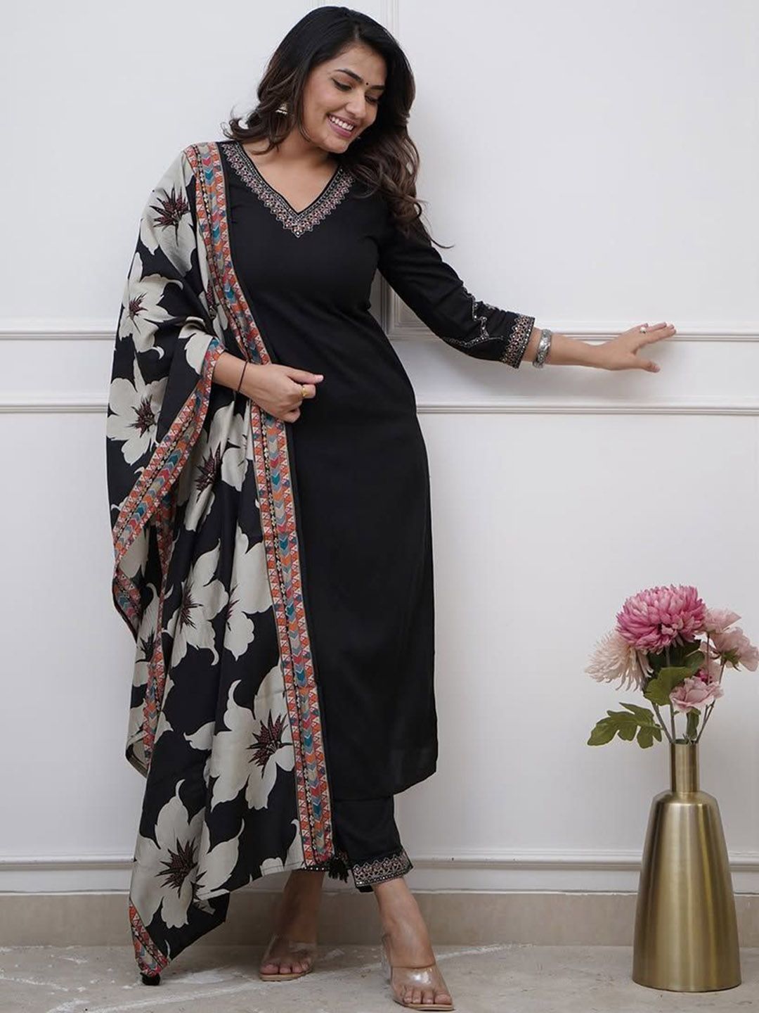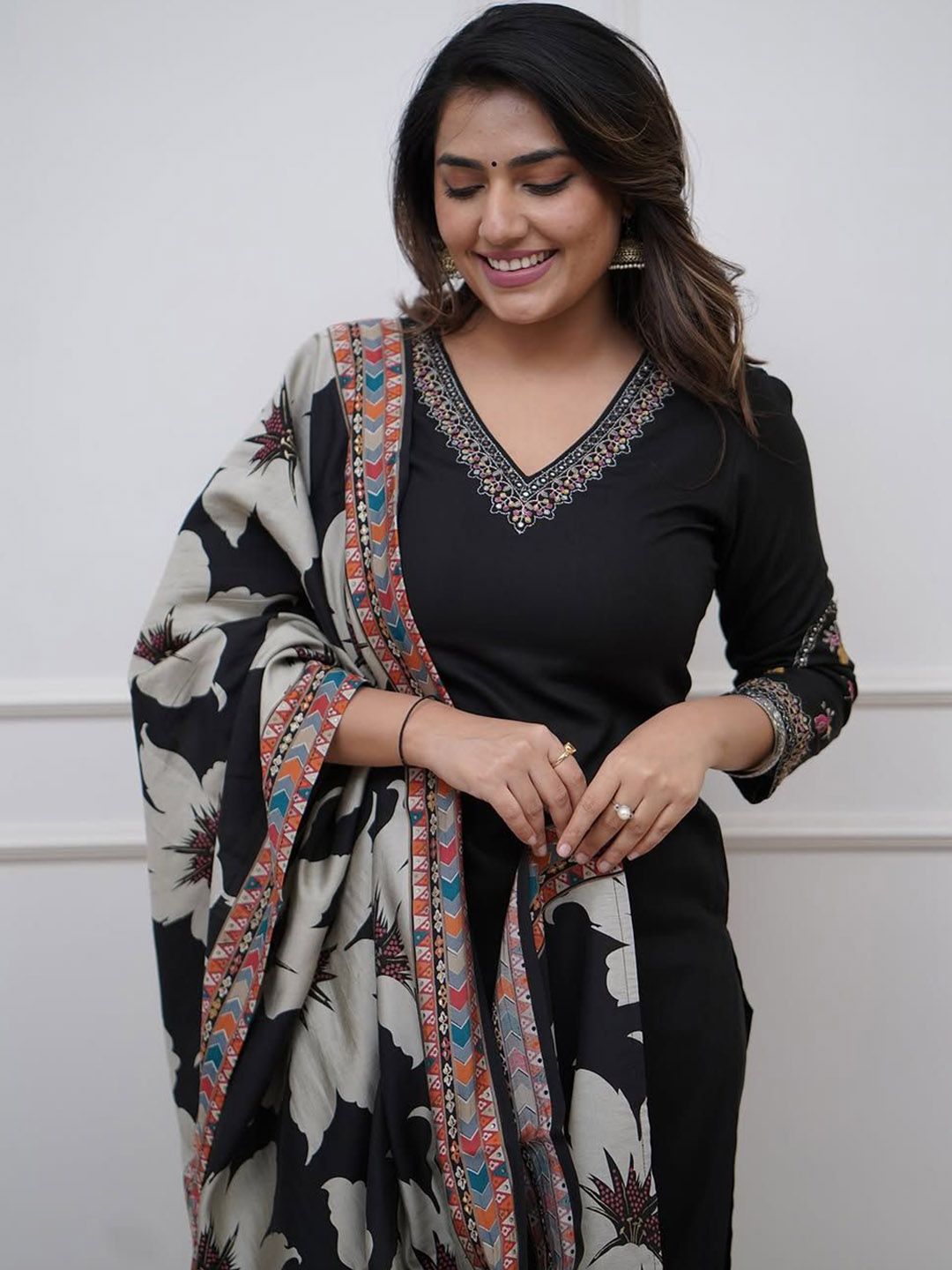 TWINS LADY Women Ethnic Motifs Embroidered V-Neck Kurta with Trousers & Dupatta