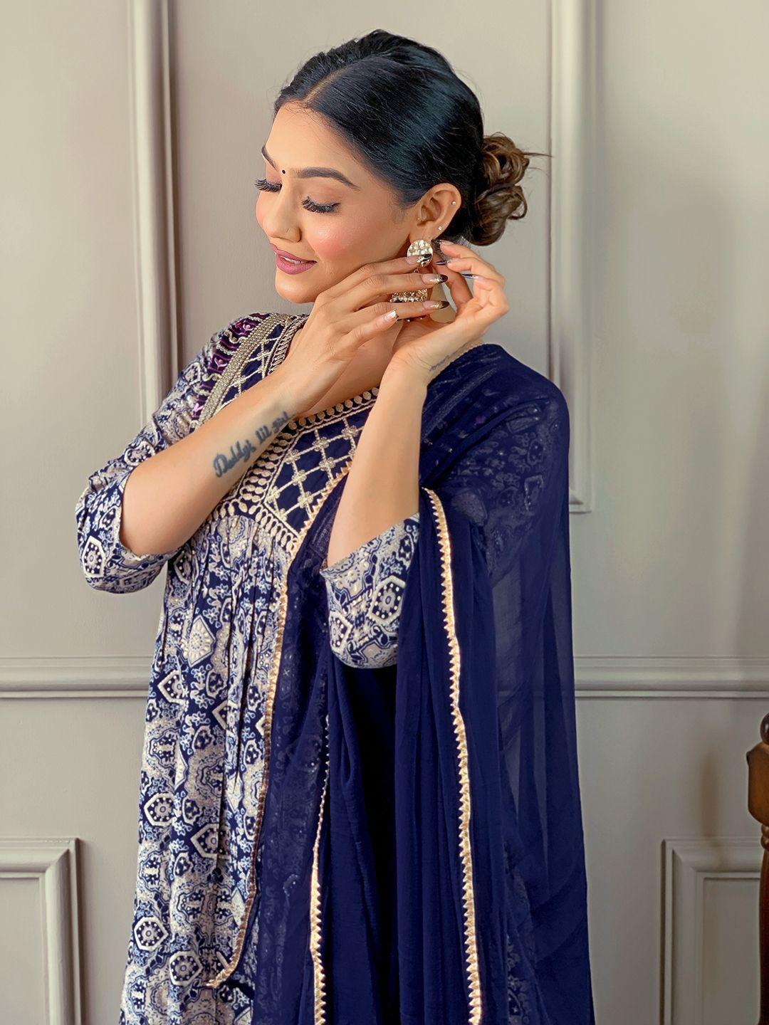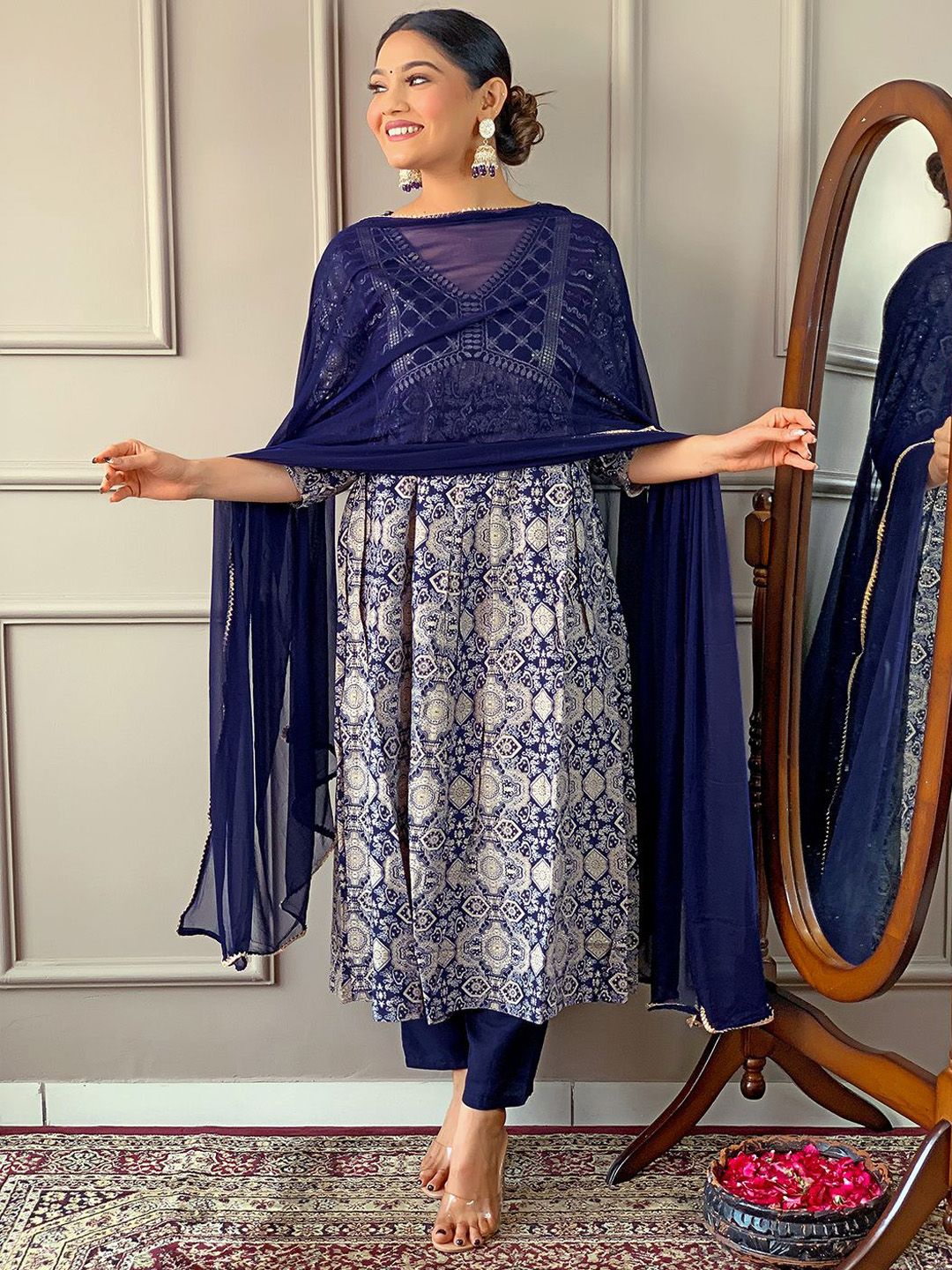 TWINS LADY Women Ethnic Motifs Printed Anarkali Kurta with Trousers & Dupatta