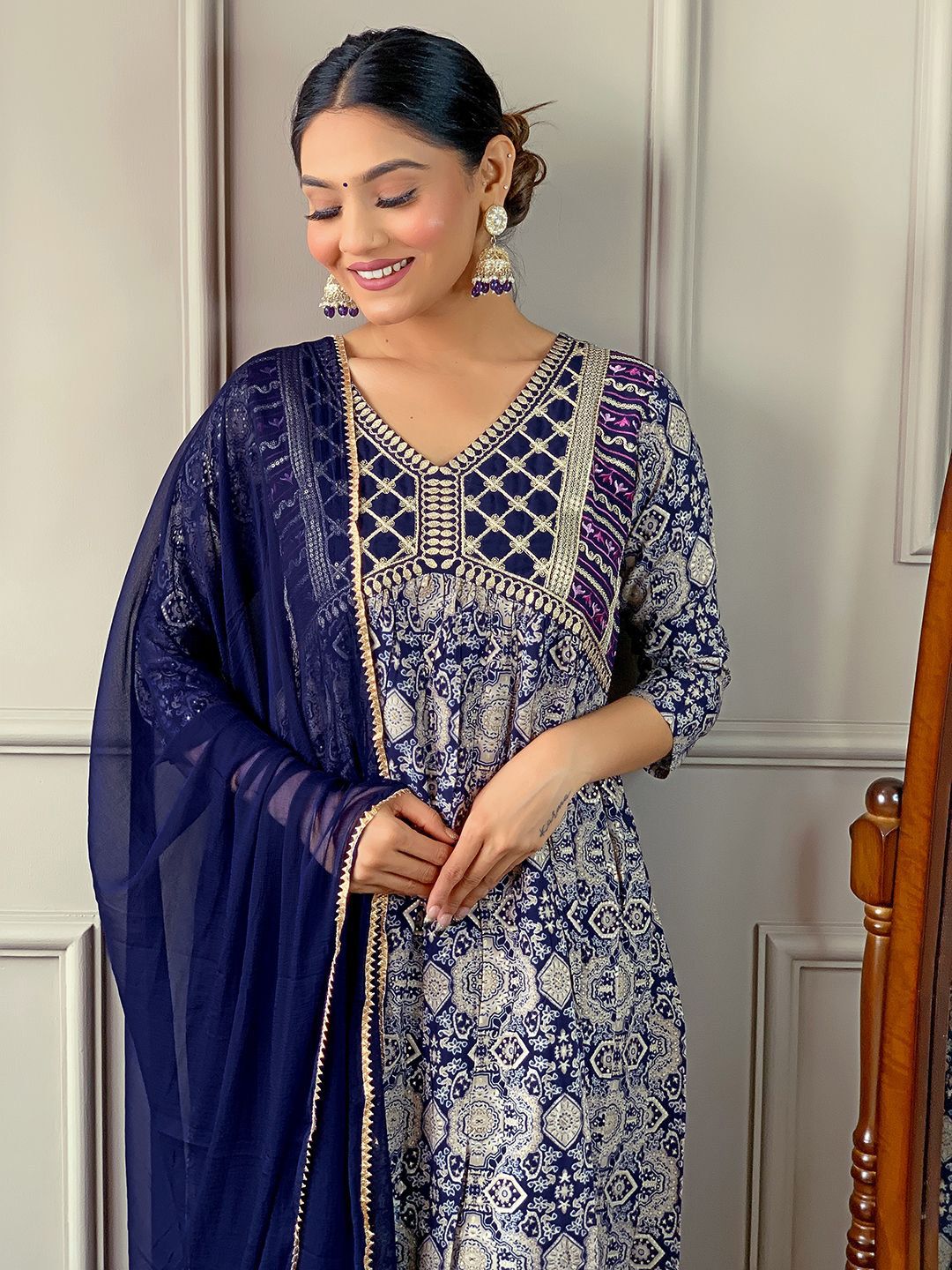 Buy this stylish TWINS LADY Women Ethnic Motifs Printed Anarkali Kurta with Trousers & Dupatta at Marincart Nepal. This product offers great quality and value. Perfect for those looking for the latest trends in fashion. Get yours now at unbeatable prices.