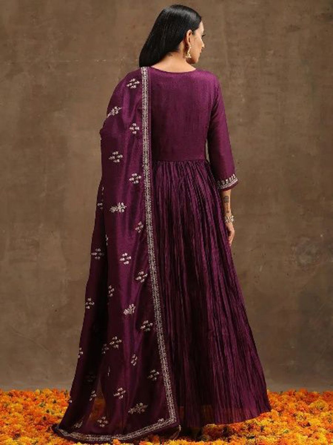 TWINS LADY Women Floral Embroidered Pleated Anarkali Kurta with Trousers & Dupatta