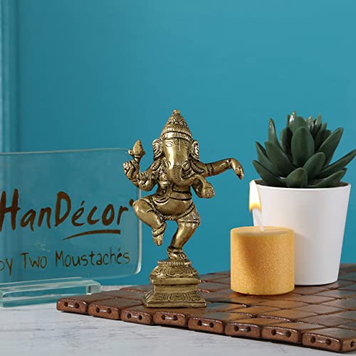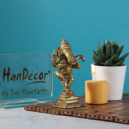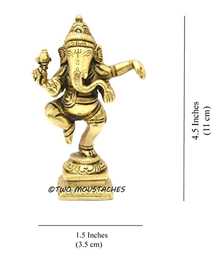 Two Moustaches Brass Dancing Ganesha Decor Idol for Home Temple, Ganesha Statue for Home, Lord Ganesha Statue, Size - 4.5 Inches, Standard, Pack of 1