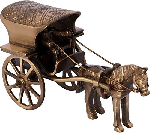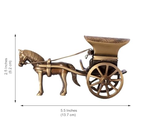 Material: Brass Dimensions: Length: 5.5 inches (13.7 cm), Width: 2 inches (5 cm), Height: 2.5 inches (6.2 cm) Package Contains: 1 Unit of Brass Horse Cart Showpiece Figurine Vintage Charm: The horse cart design exudes vintage appeal, offering a sense of nostalgia and history to your home decor. It's a timeless piece that complements a wide range of interior styles. Enhance Ambiance: Elevate the atmosphere of your home with the addition of this charming showpiece. Versatile Accent: Whether you place it on a mantle, a bookshelf, or a coffee table, this showpiece adds a touch of elegance to any room. It's the perfect conversation starter for gatherings with family and friends. Premium Quality Material: Made from high-quality brass, this showpiece ensures durability and a timeless appeal that adds a touch of elegance to any space.