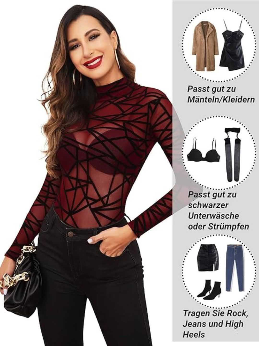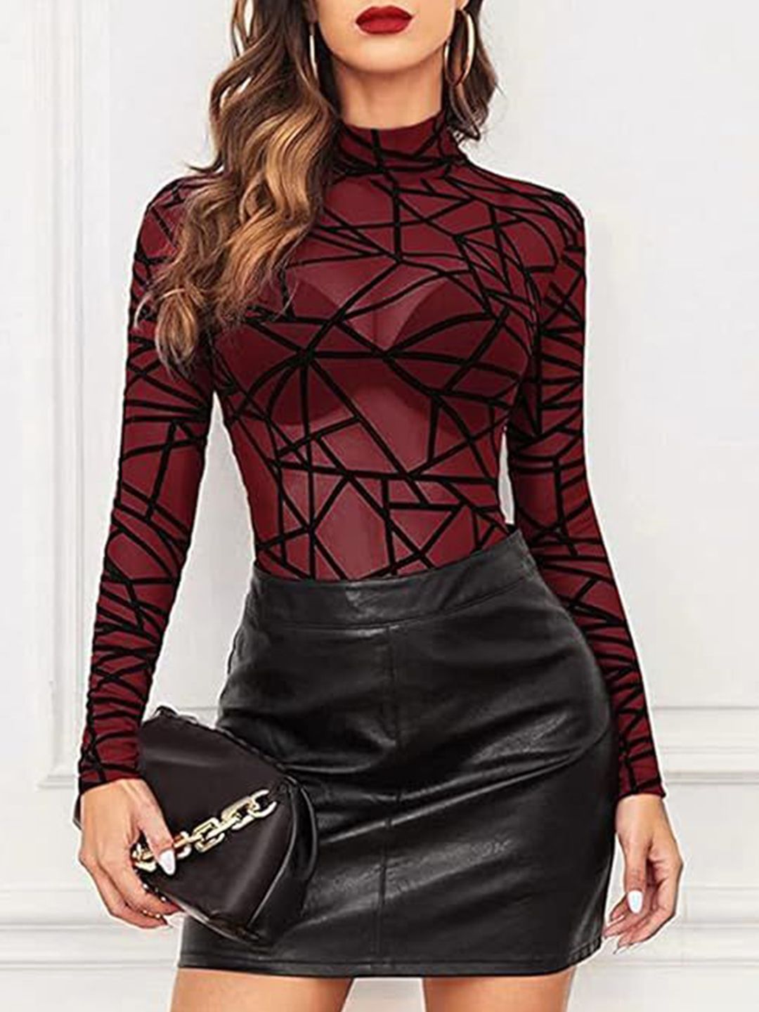 UDHATIKRAMAN Geometric Sheer Printed High Neck Bodysuit